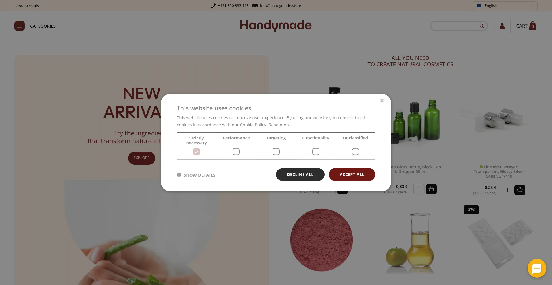 The website implements cookie consent mechanisms in compliance with privacy regulations such as GDPR or CCPA. This demonstrates that handymade.store adheres to data protection standards and provides users with control over personal data collection practices.