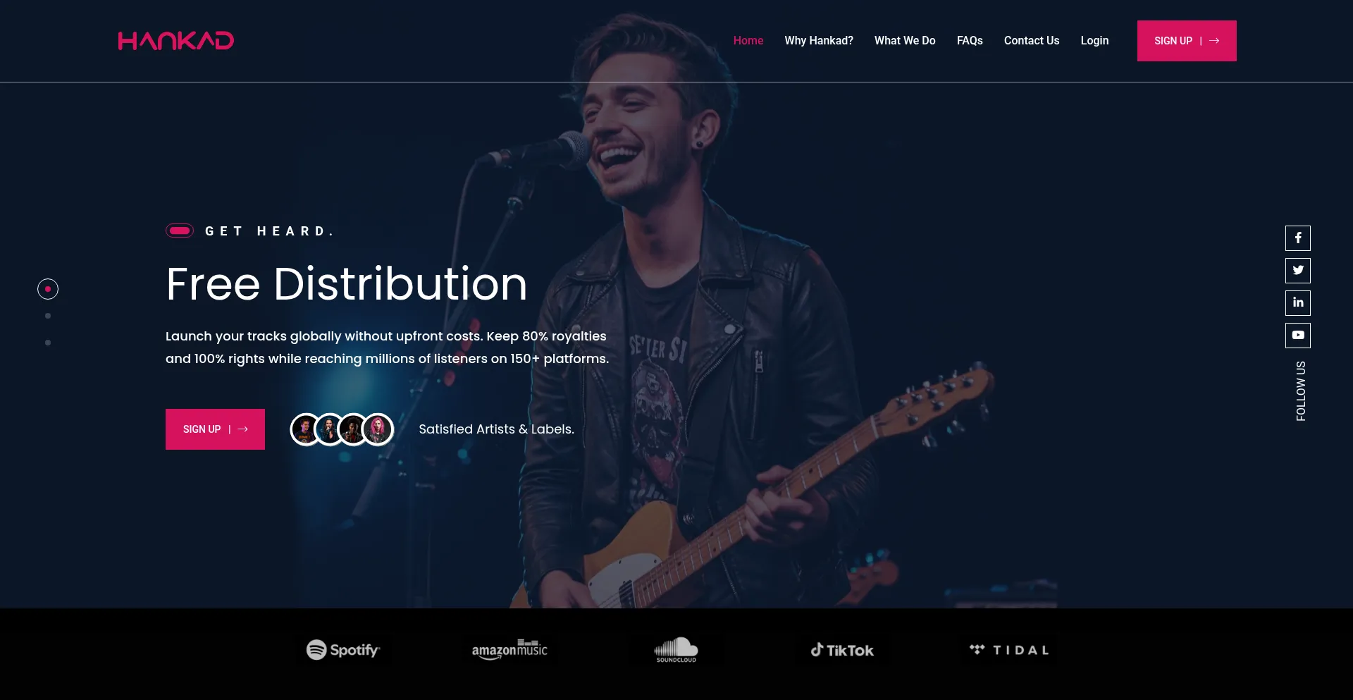 Distribute your music globally for free. Keep 80% royalties & 100% rights. Reach millions on Spotify, Apple Music & 150+ platforms.