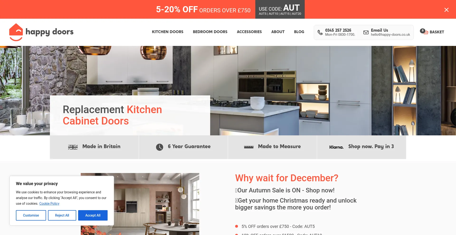 The website implements cookie consent mechanisms in compliance with privacy regulations such as GDPR or CCPA. This demonstrates that happy-doors.co.uk adheres to data protection standards and provides users with control over personal data collection practices.