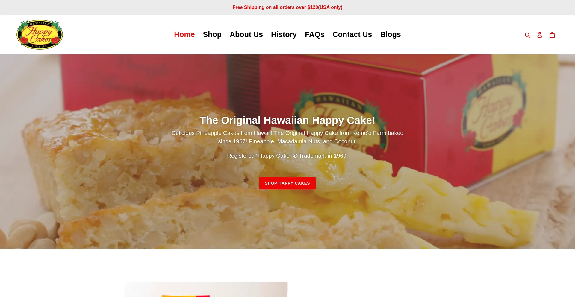 Delicious Pineapple Cakes from Hawaii! The Original Happy Cake from Kemo'o Farm baked since 1967! Pineapple, Macadamia Nuts, and Coconut! All Cakes come wrapped in beautiful gif...