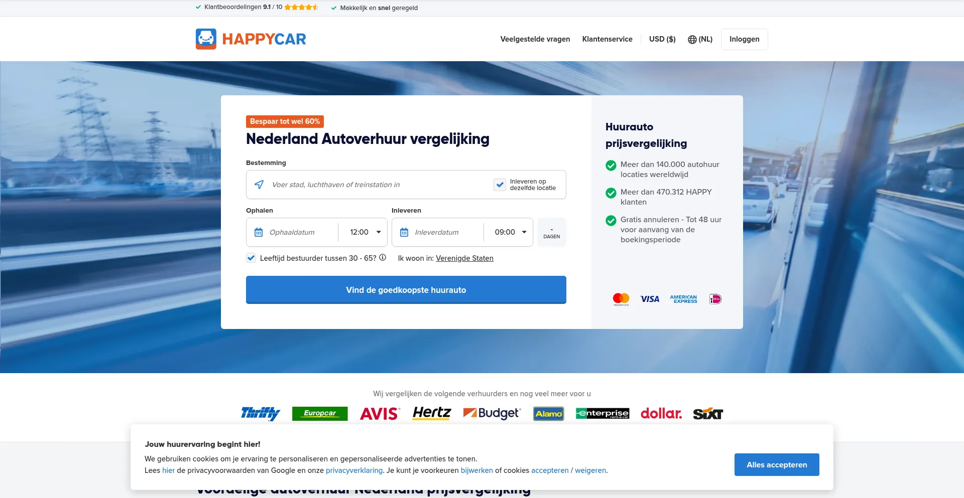ᑕ❶ᑐ Betaalbare autoverhuur Nederland Prijsvergelijking - HAPPYCAR