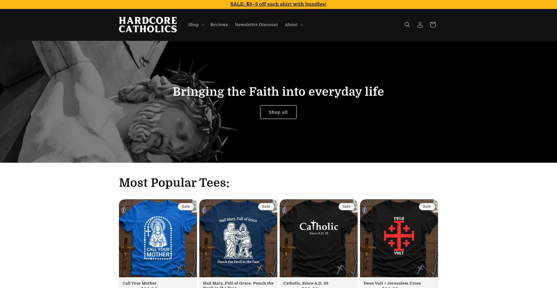 Our analyzer determines that website hardcorecatholics.com is using Shopify CMS. Shopify is a popular e-commerce platform, powering around 4.4% of websites globally.