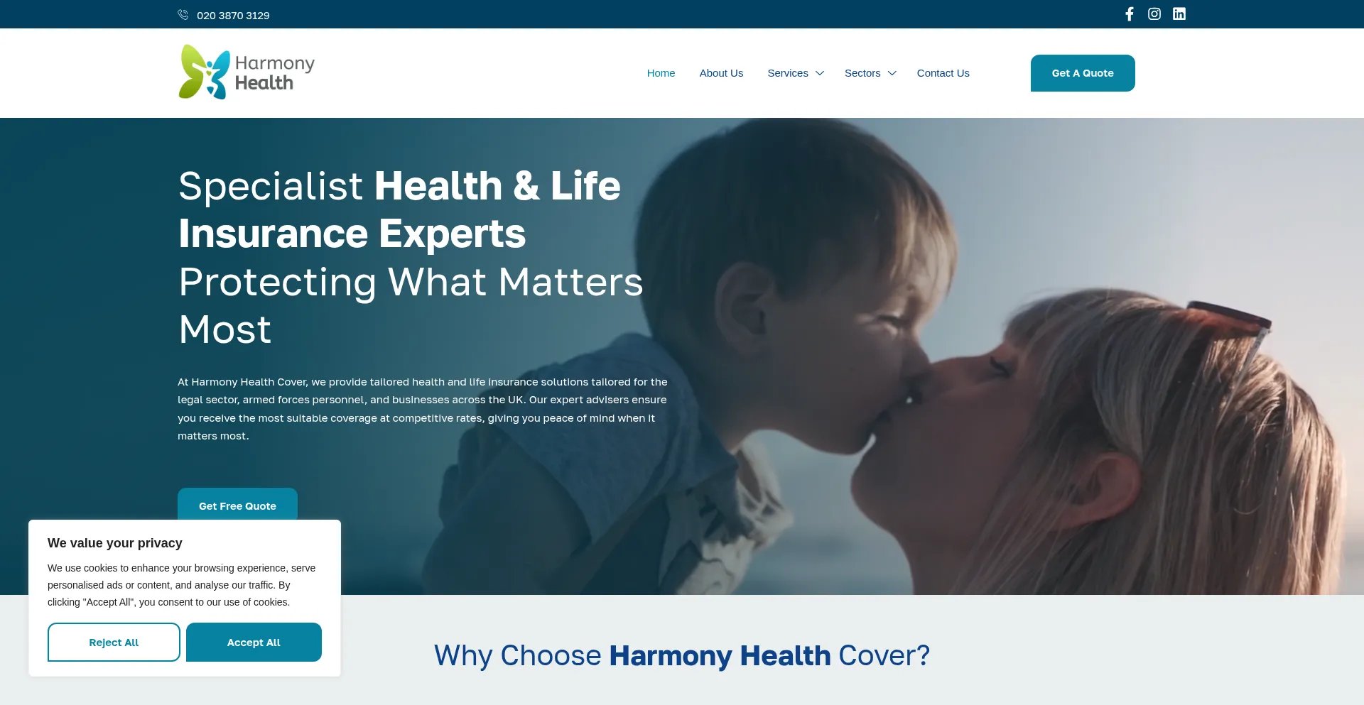 The website implements cookie consent mechanisms in compliance with privacy regulations such as GDPR or CCPA. This demonstrates that harmonyhealthcover.co.uk adheres to data protection standards and provides users with control over personal data collection practices.