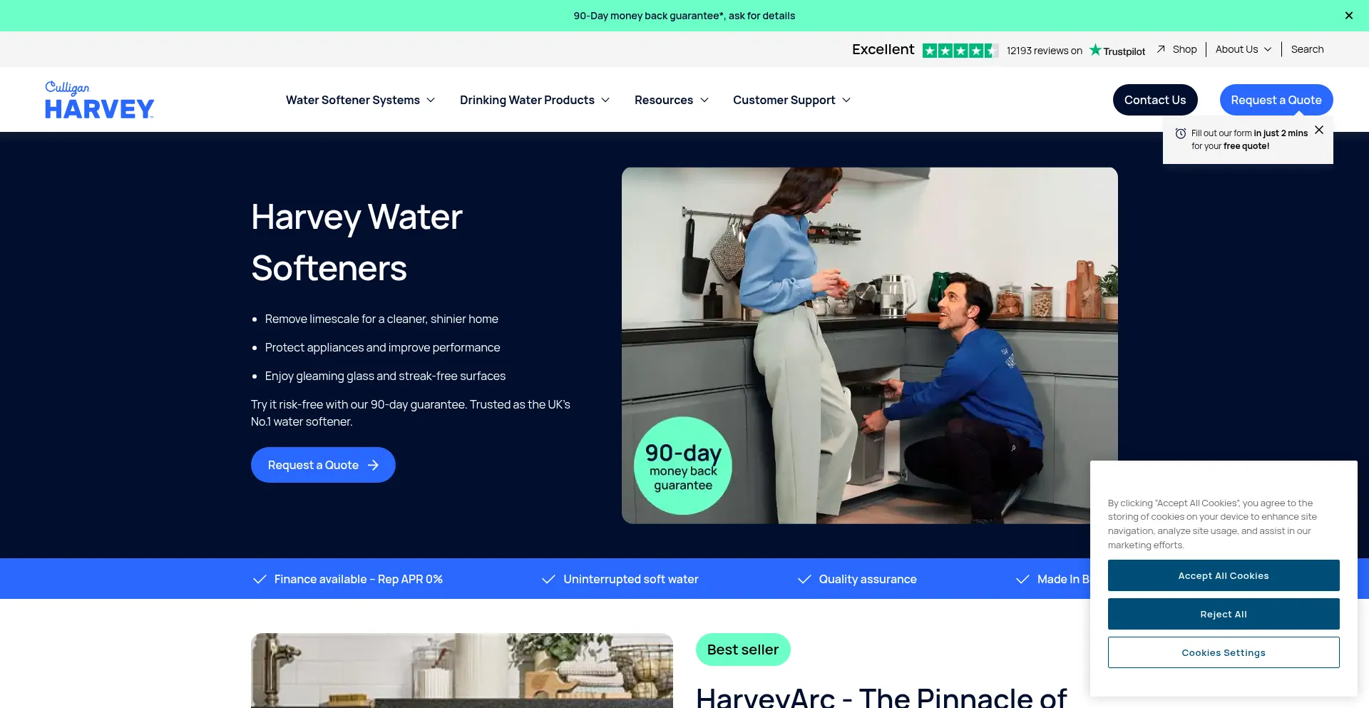The website implements cookie consent mechanisms in compliance with privacy regulations such as GDPR or CCPA. This demonstrates that harveywatersofteners.co.uk adheres to data protection standards and provides users with control over personal data collection practices.