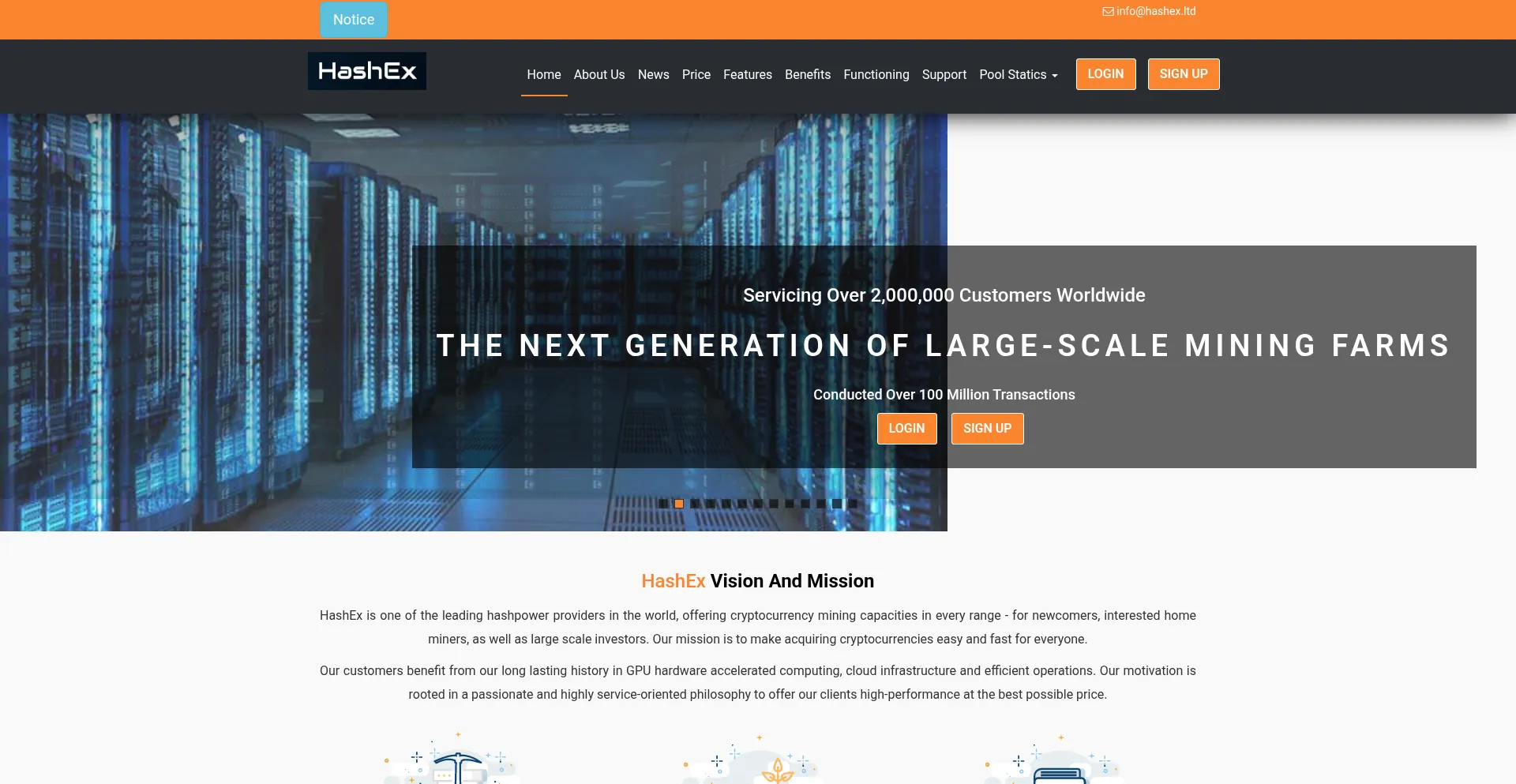 The hashex.ltd probably offers cloud mining services or cryptocurrency mining investments. Some platforms provide legitimate mining rental services, while others may use fake mining dashboards to display virtual earnings that cannot be withdrawn.