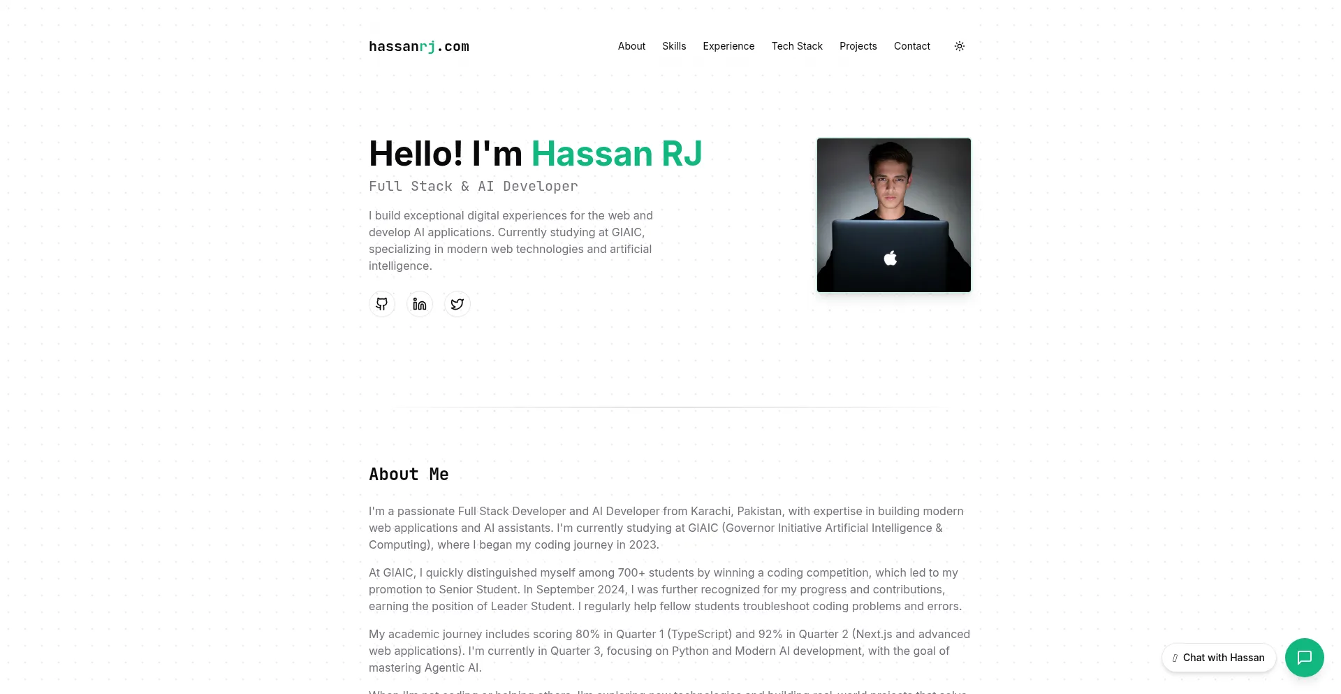 Website construction appears to utilize rapid deployment tools or website builders, suggesting hassanrj.vercel.app may represent a minimal-investment project or experimental venture. While not inherently problematic, such implementations may indicate limited long-term commitment or professional development standards.