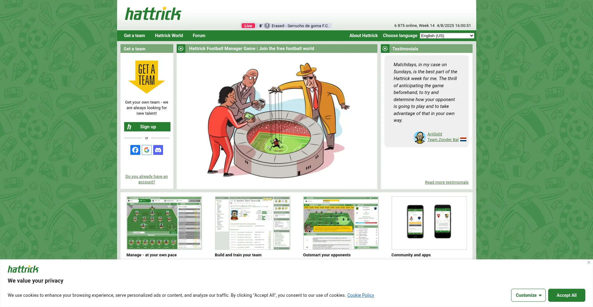 The website implements cookie consent mechanisms in compliance with privacy regulations such as GDPR or CCPA. This demonstrates that hattrick.org adheres to data protection standards and provides users with control over personal data collection practices.