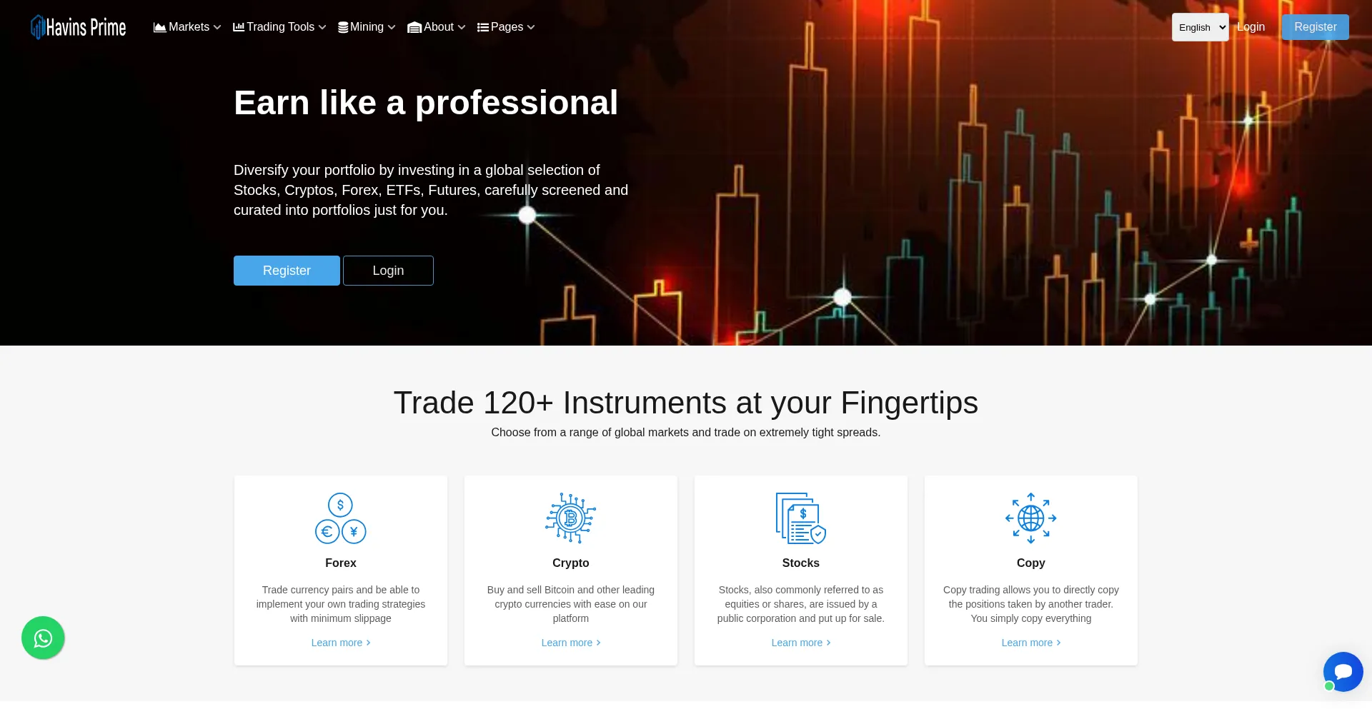 Havins Prime is an award-winning cryptocurrency trading platform that allows you to trade global markets including Crypto, Commodities, Indices, and Forex. Benefit from advanced...