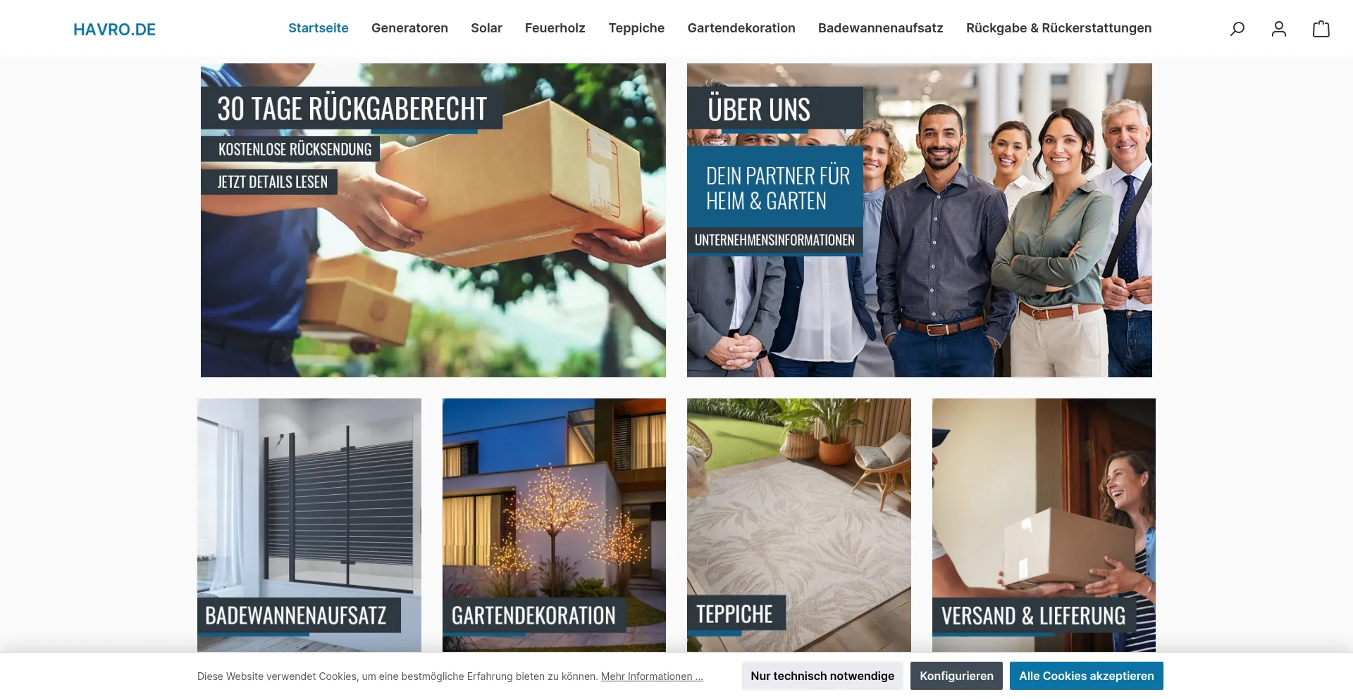 Analysis indicates that havro.de operates as an e-commerce platform facilitating online transactions for goods or services. The website implements shopping cart functionality, payment processing systems, and product catalog features typical of commercial retail operations.