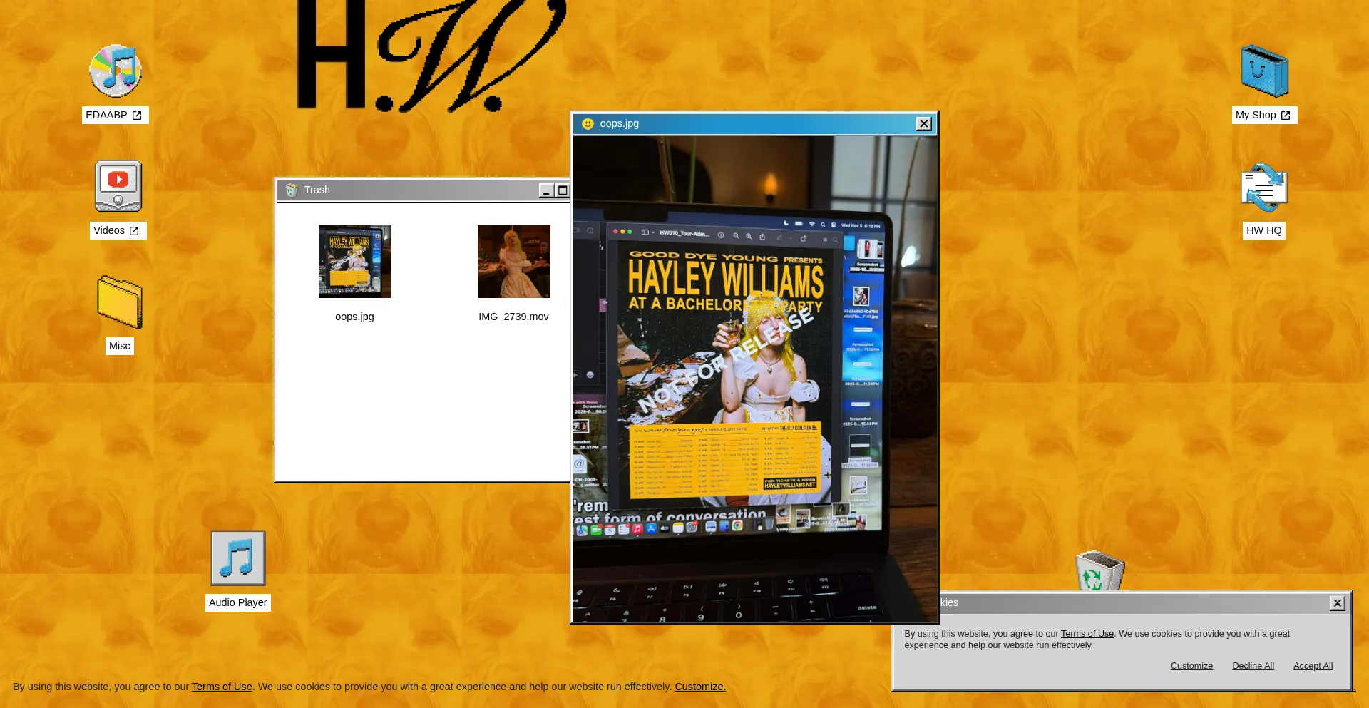 The website implements cookie consent mechanisms in compliance with privacy regulations such as GDPR or CCPA. This demonstrates that hayleywilliams.net adheres to data protection standards and provides users with control over personal data collection practices.