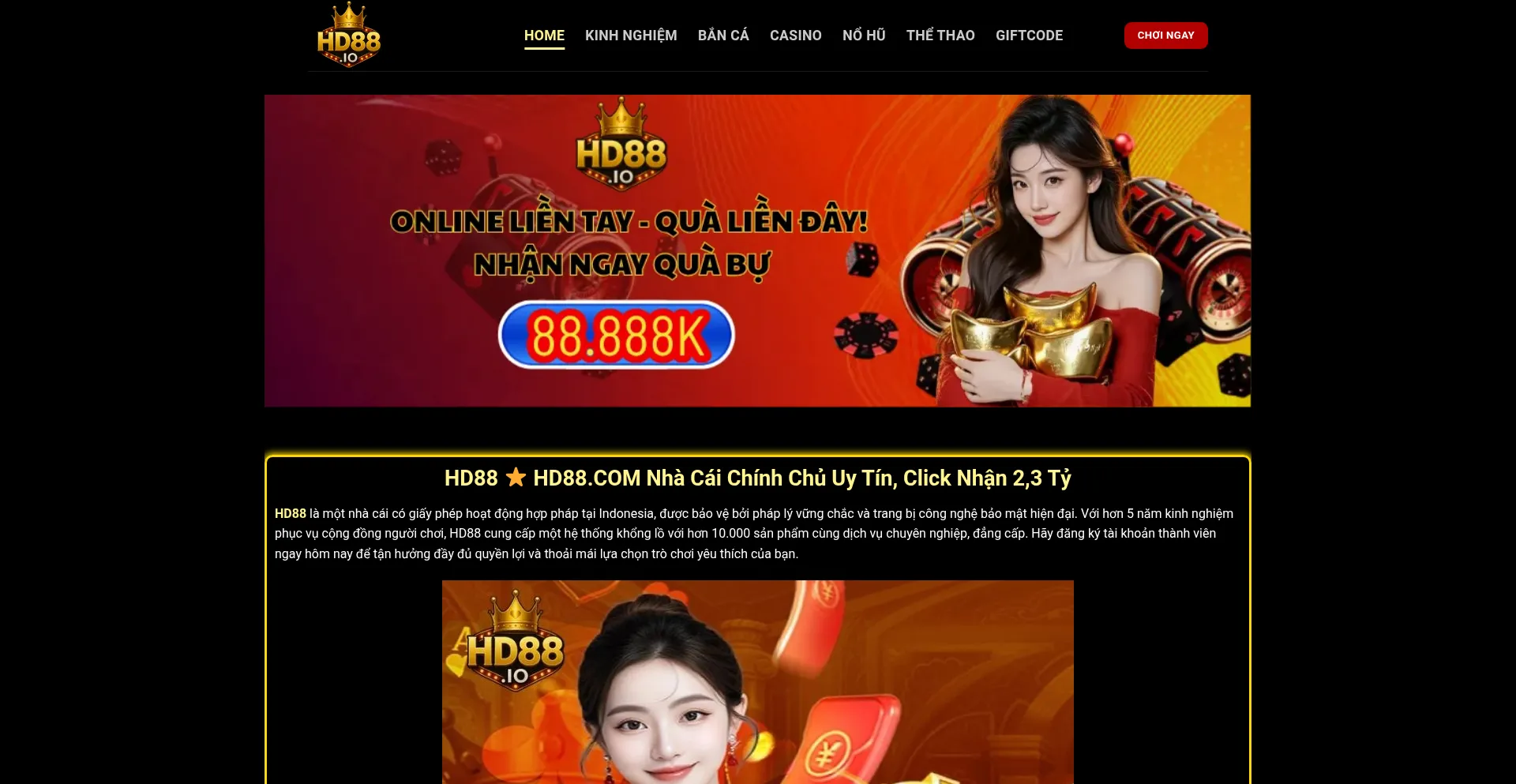HD88 là nhà cái hàng đầu châu Á với hệ thống game đa dạng, bảo mật cao và khuyến mãi hấp dẫn cho mọi thành viên.