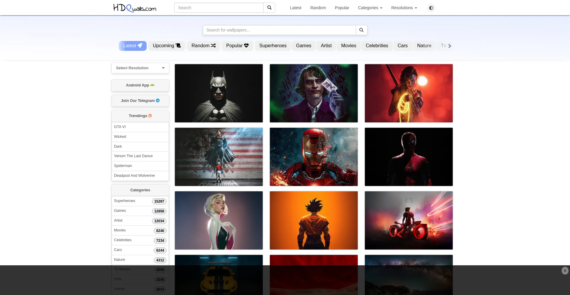 The hdqwalls.com website offers a mobile application for Android devices, indicating expanded platform presence beyond web-based services.