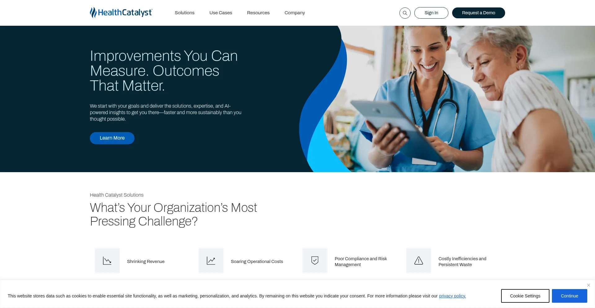 The website implements cookie consent mechanisms in compliance with privacy regulations such as GDPR or CCPA. This demonstrates that healthcatalyst.com adheres to data protection standards and provides users with control over personal data collection practices.