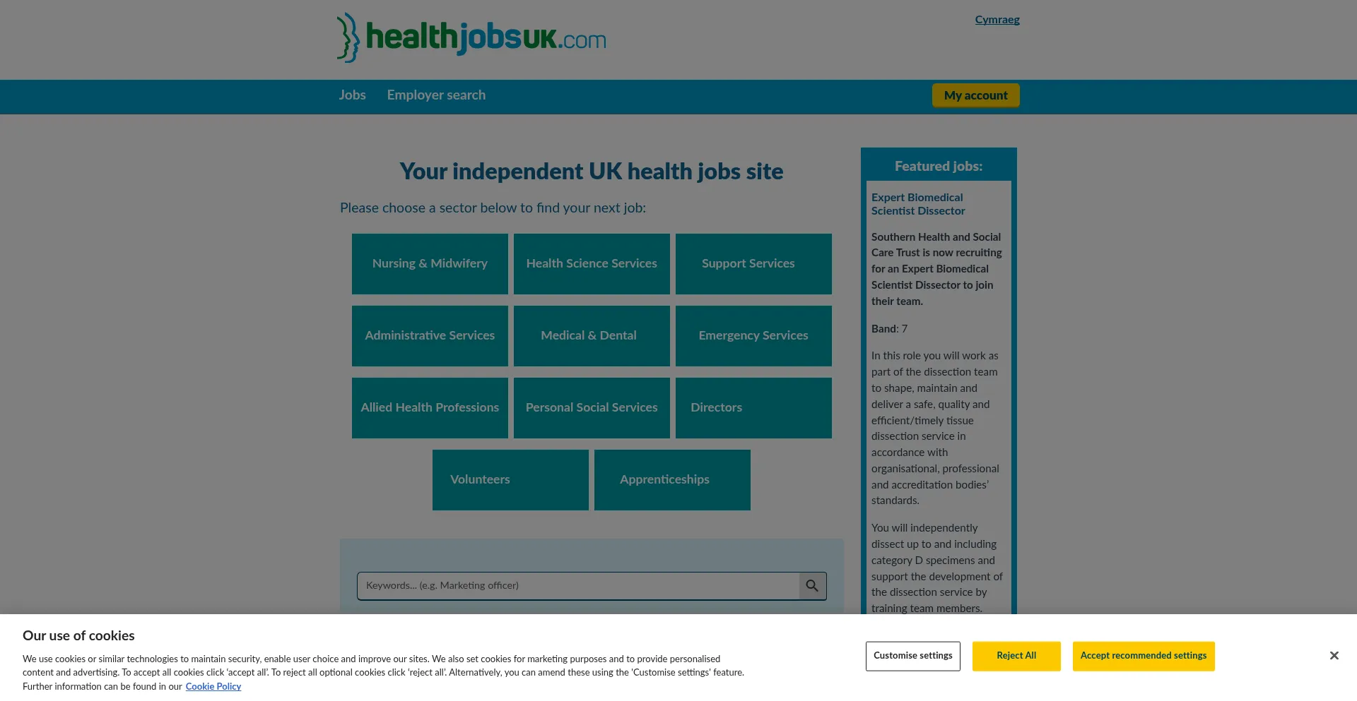 The website implements cookie consent mechanisms in compliance with privacy regulations such as GDPR or CCPA. This demonstrates that healthjobsuk.com adheres to data protection standards and provides users with control over personal data collection practices.