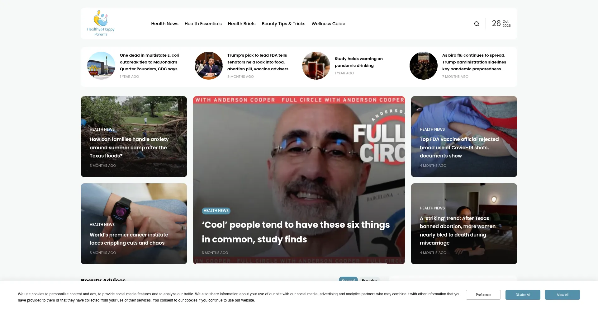 The website implements cookie consent mechanisms in compliance with privacy regulations such as GDPR or CCPA. This demonstrates that healthyandhappyparents.com adheres to data protection standards and provides users with control over personal data collection practices.