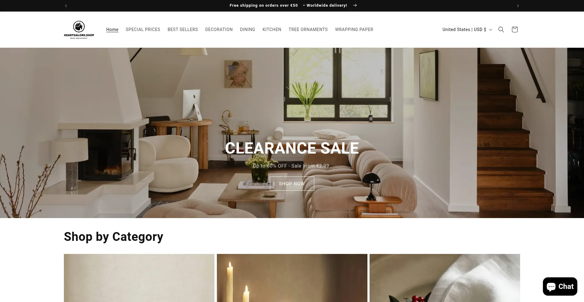 Analysis indicates that heartgalore.shop operates as an e-commerce platform facilitating online transactions for goods or services. The website implements shopping cart functionality, payment processing systems, and product catalog features typical of commercial retail operations.