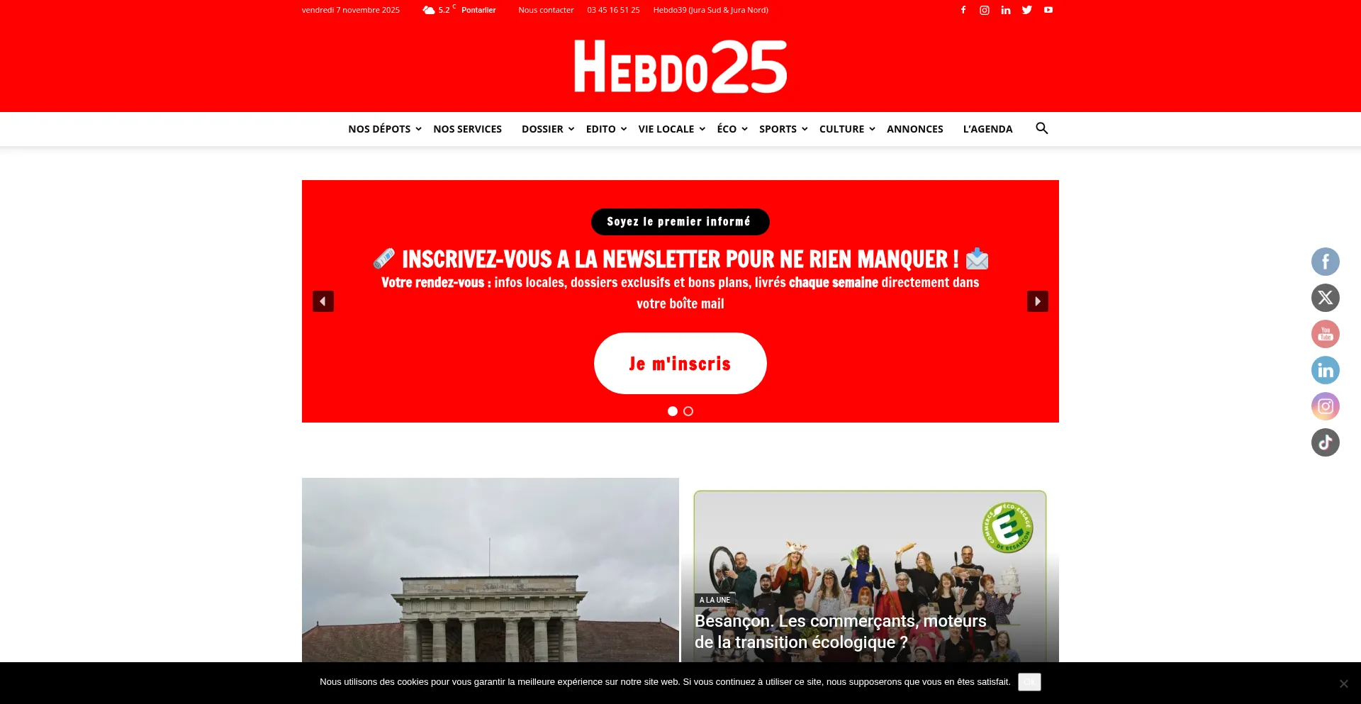 Hebdo25 : Votre source d'infos locales, distribuée à plus de 100 000 exemplaires chaque semaine dans le Doubs.
