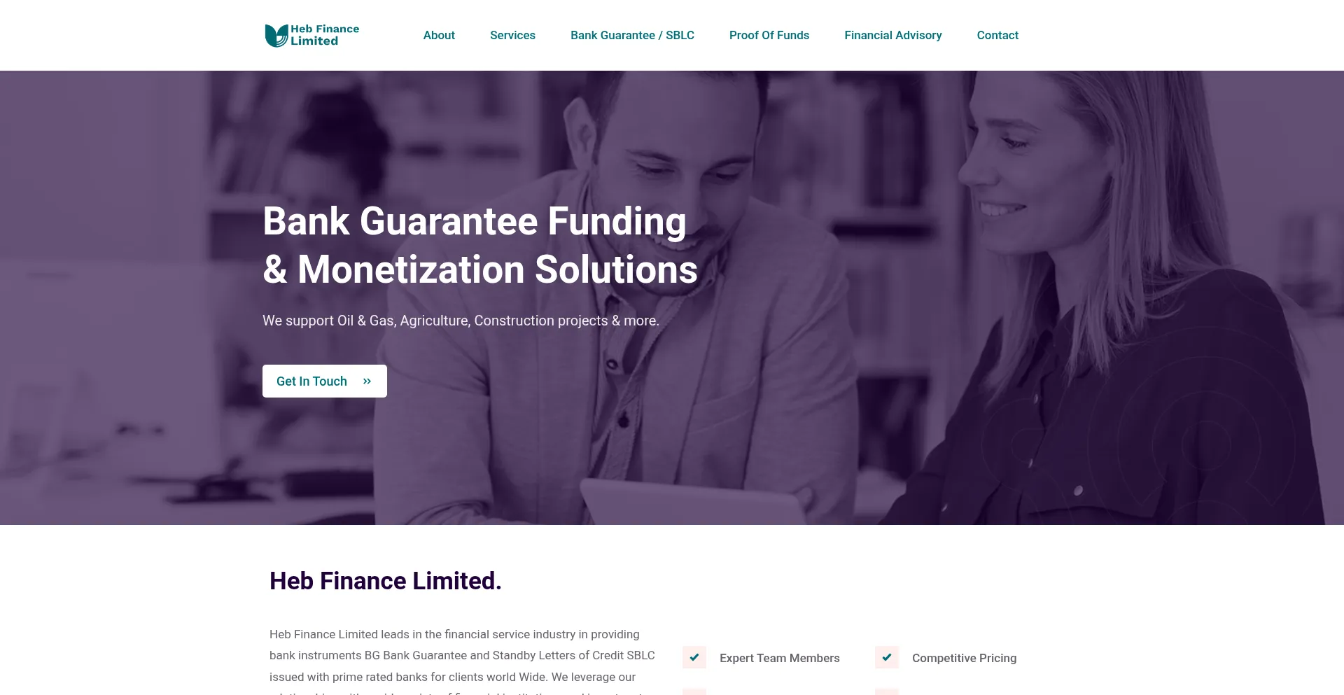 The hebfinance.com website provides financial services including investment management, wealth advisory, or financial planning solutions. Services may encompass portfolio management, investment opportunities, financial consulting, or asset growth strategies for individual and institutional clients.