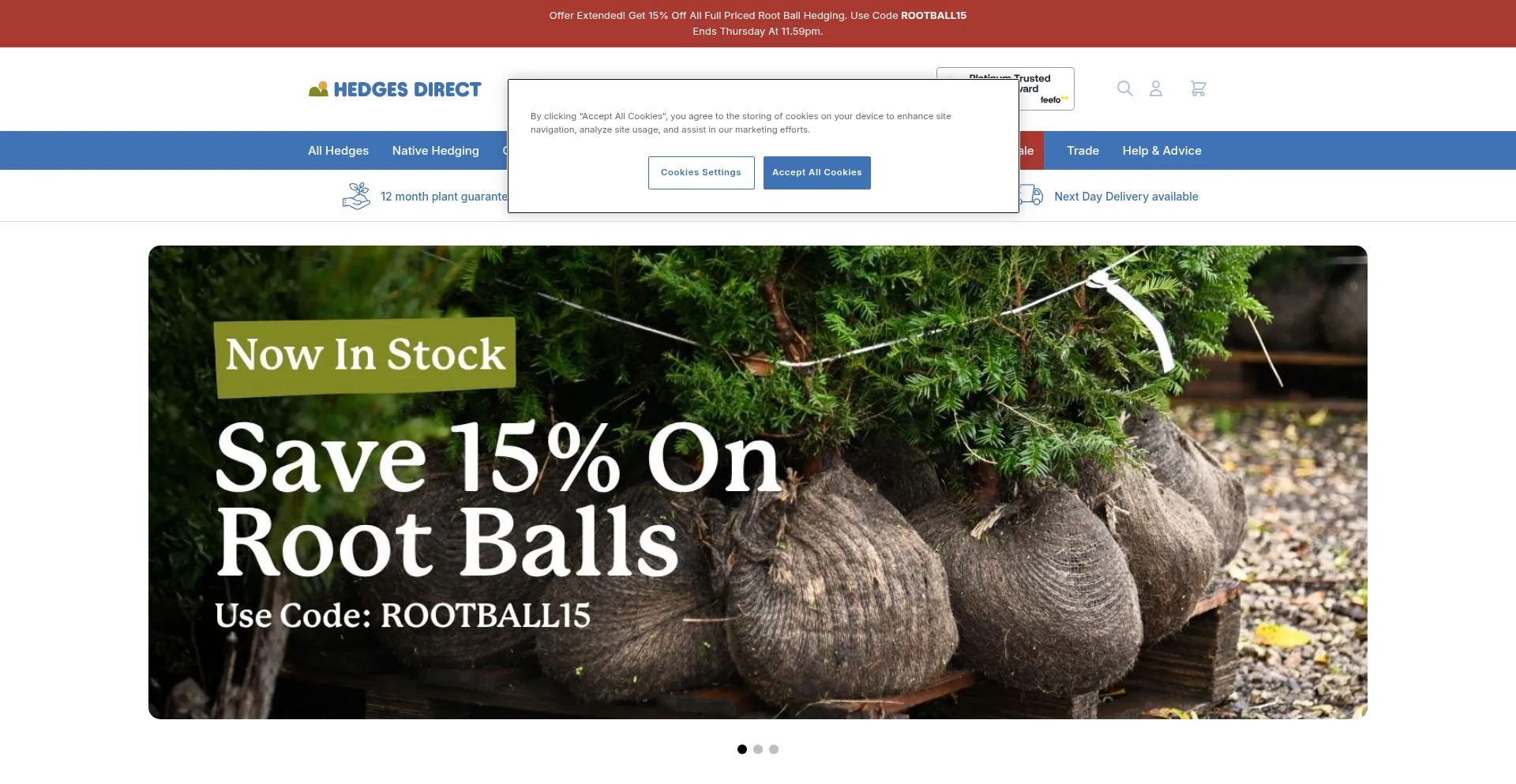The website implements cookie consent mechanisms in compliance with privacy regulations such as GDPR or CCPA. This demonstrates that hedgesdirect.co.uk adheres to data protection standards and provides users with control over personal data collection practices.