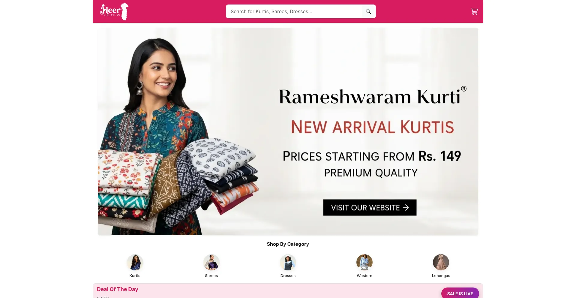 Discover the latest collection of women's clothing including kurtis, sarees, dresses, and western wear at Heer Saree. Shop now for trendy styles and great offers.