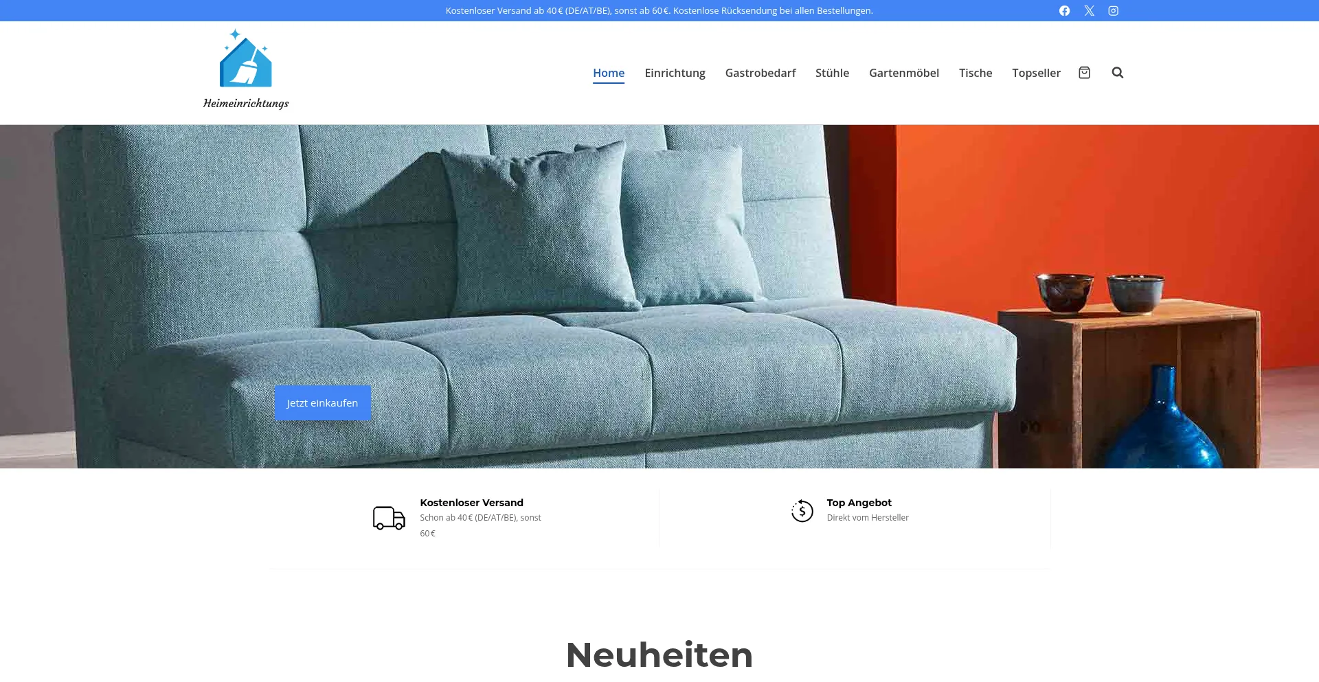 Analysis reveals that heimeinrichtungs.com displays social media icons or links that do not connect to legitimate social media profiles. This deceptive practice is commonly employed to create false legitimacy and represents a significant indicator of fraudulent intent requiring immediate caution.