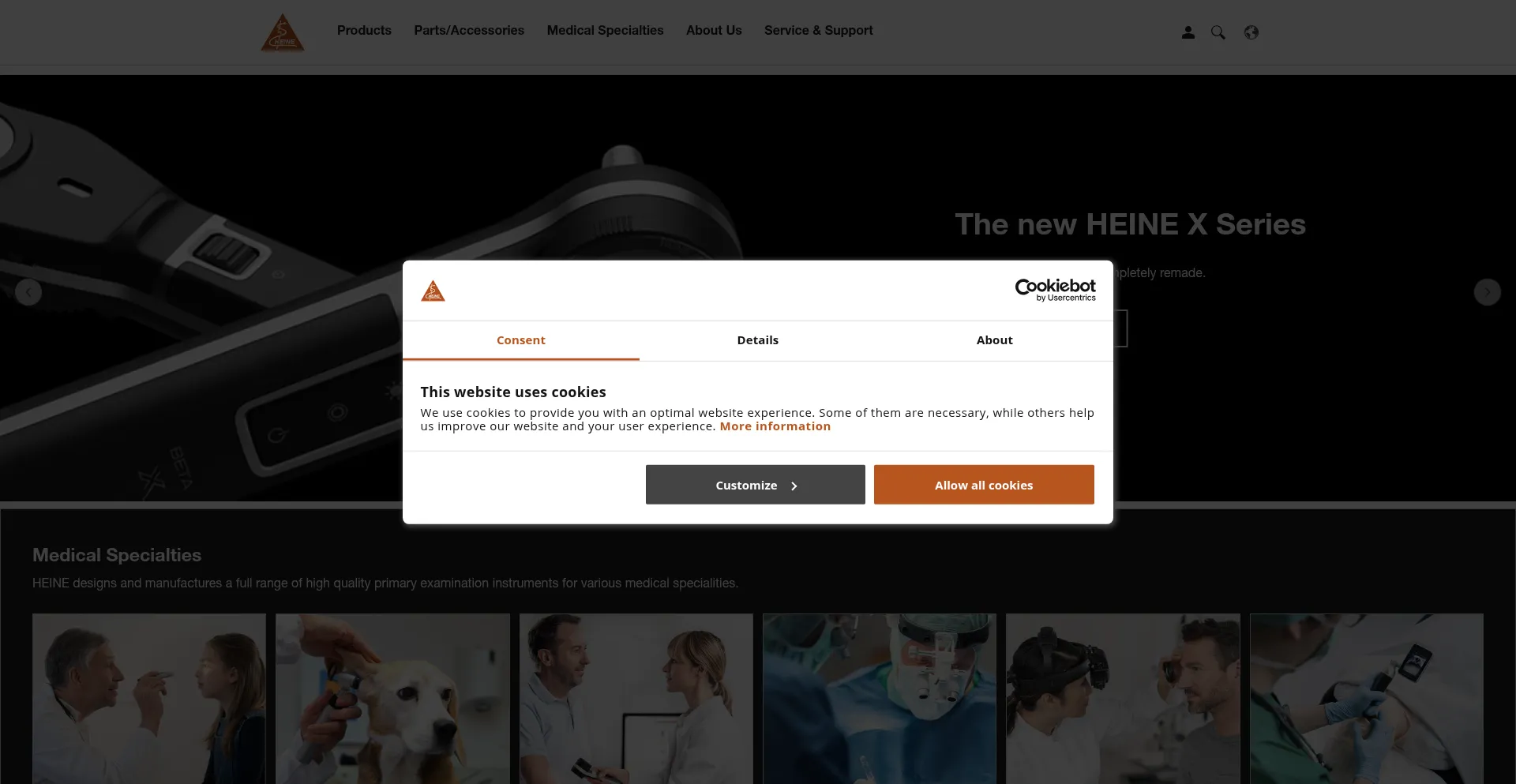 The website implements cookie consent mechanisms in compliance with privacy regulations such as GDPR or CCPA. This demonstrates that heine.com adheres to data protection standards and provides users with control over personal data collection practices.