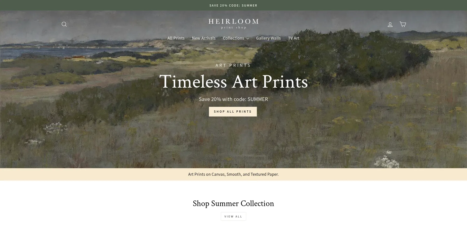 Shop our collection of heirloom art printed on archival paper or canvas. An effortless way to add art with vintage character at Heirloom Print Shop.