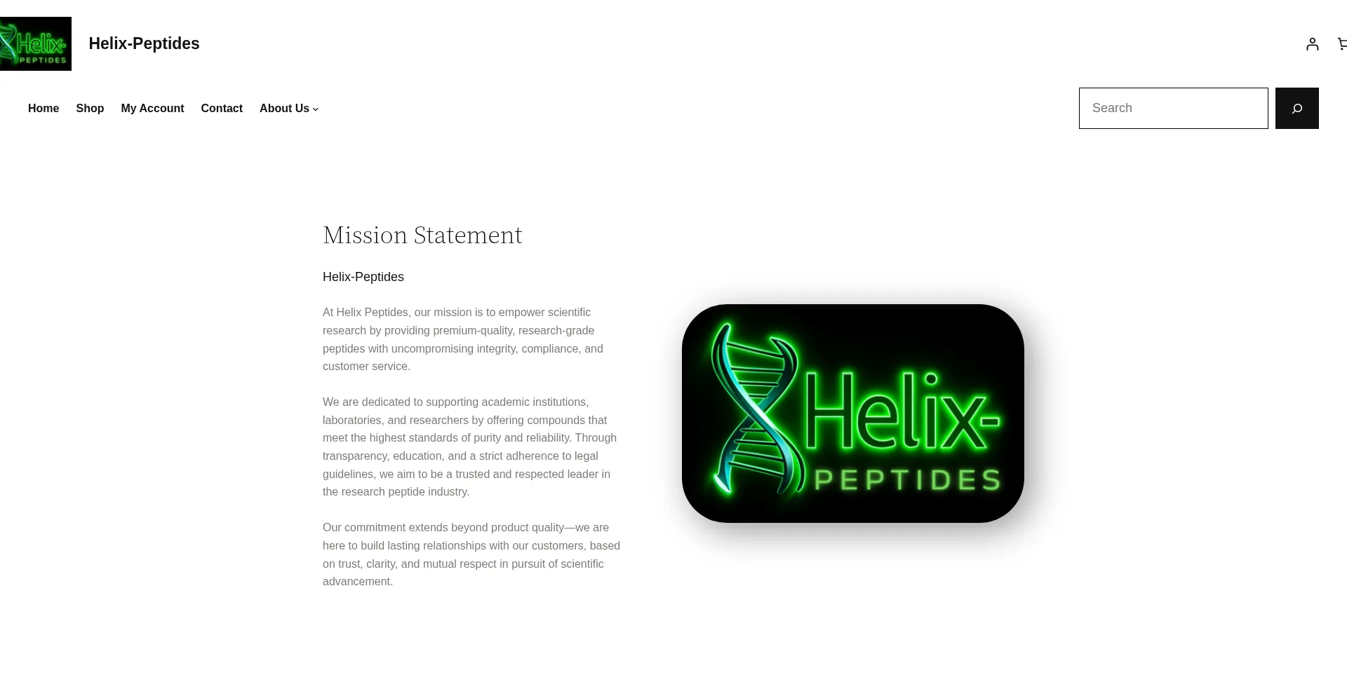 Analysis indicates that helix-peptides.com operates as an e-commerce platform facilitating online transactions for goods or services. The website implements shopping cart functionality, payment processing systems, and product catalog features typical of commercial retail operations.