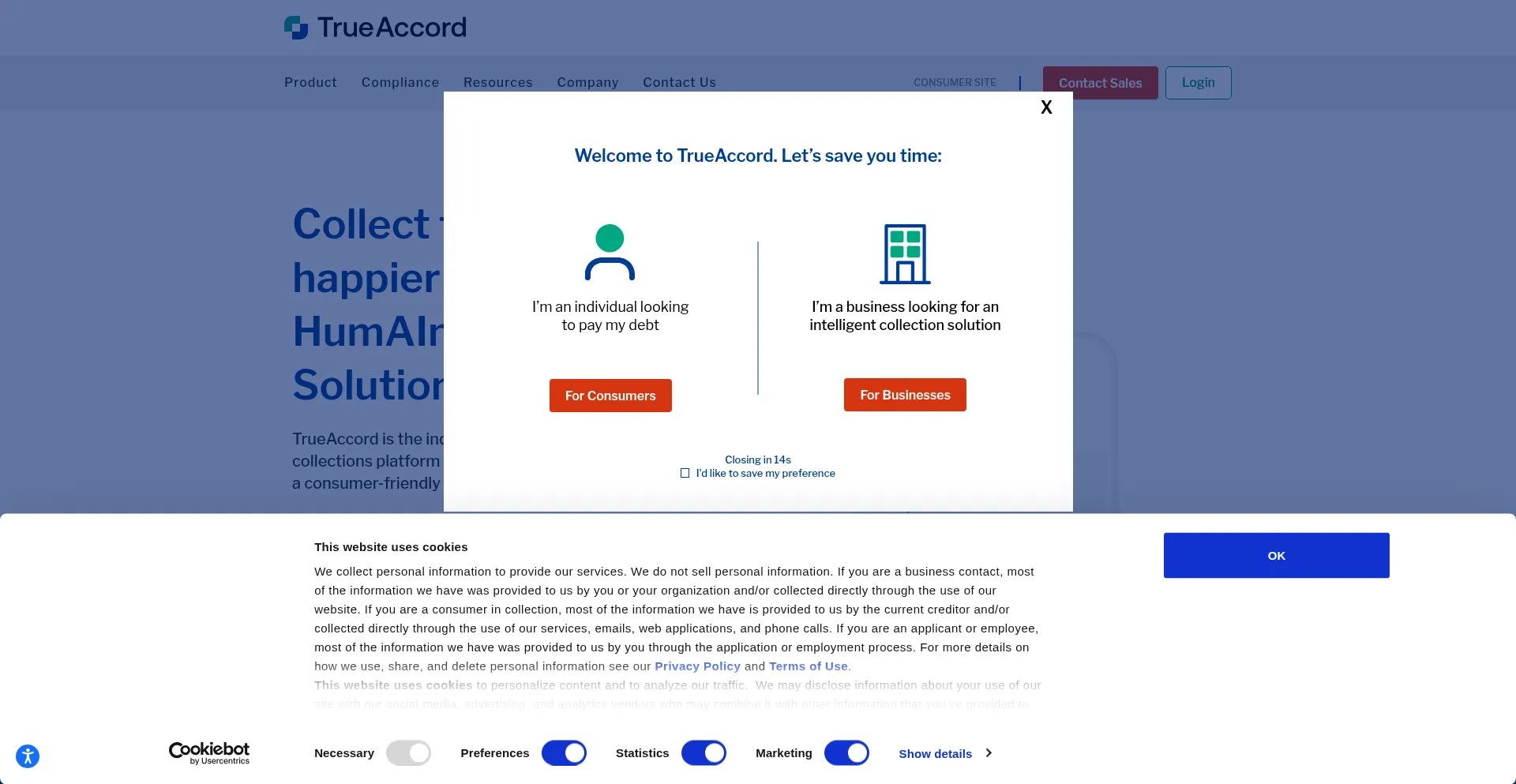 The website implements cookie consent mechanisms in compliance with privacy regulations such as GDPR or CCPA. This demonstrates that hello.trueaccord.com adheres to data protection standards and provides users with control over personal data collection practices.