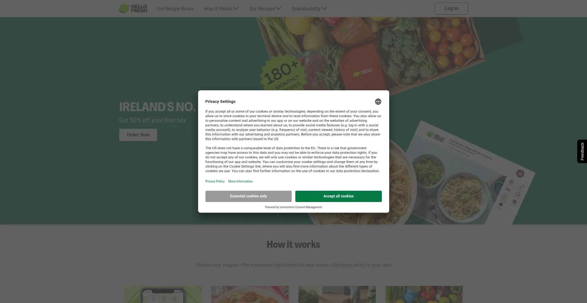 The website implements cookie consent mechanisms in compliance with privacy regulations such as GDPR or CCPA. This demonstrates that hellofresh.ie adheres to data protection standards and provides users with control over personal data collection practices.