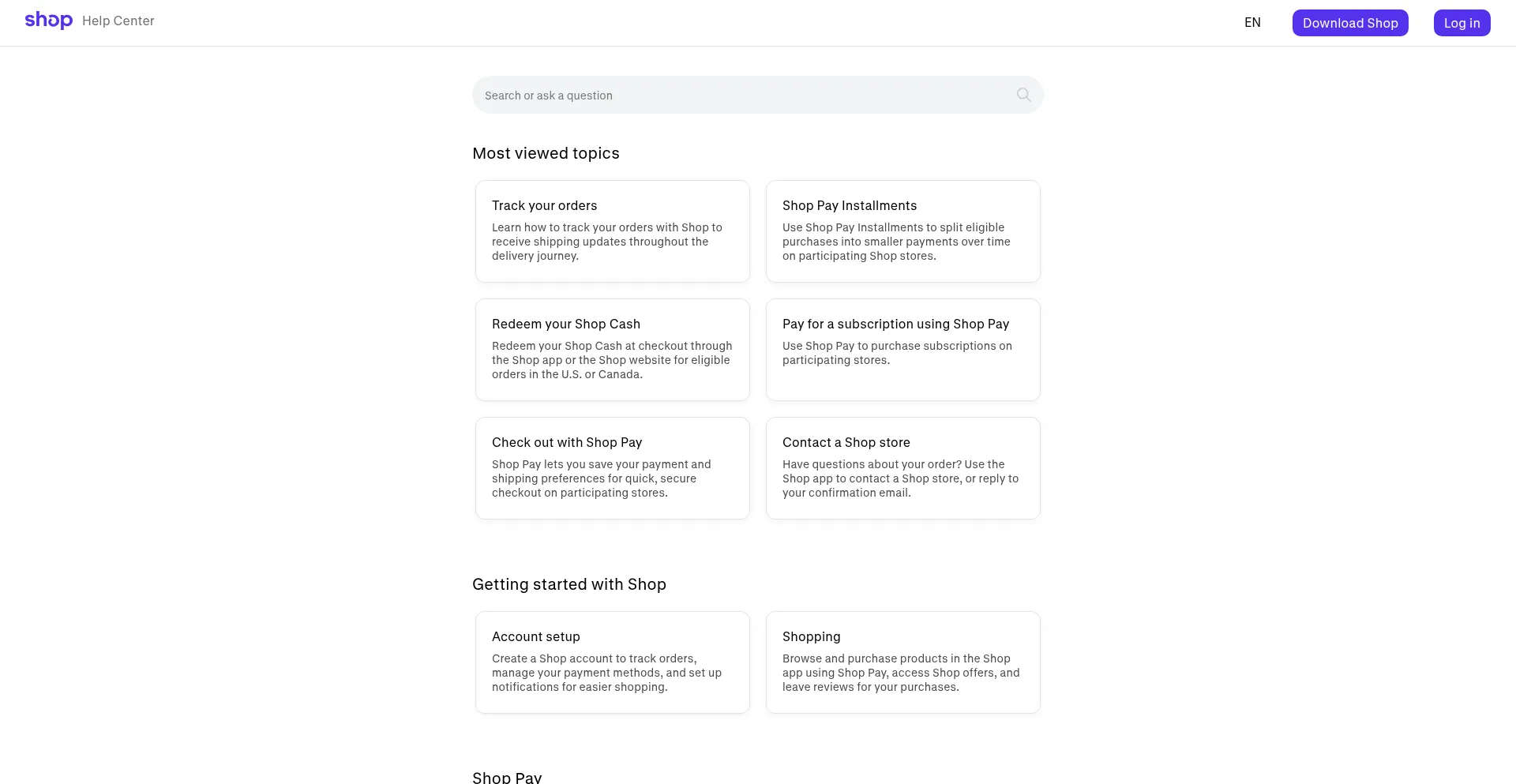 The Shop Help Center will support you as you learn about and use the Shop app. We have documentation to answer your questions.