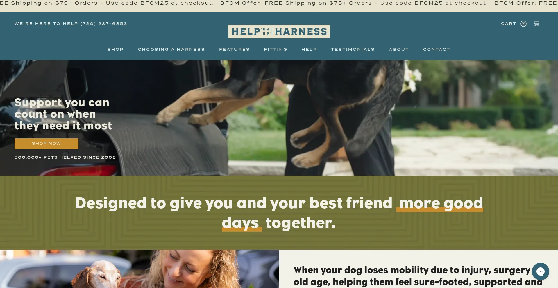 The Help 'Em Up Harness is a full-body lifting harness for dogs. Trusted by leaders in veterinary care worldwide. 500,000+ pets helped since 2008.