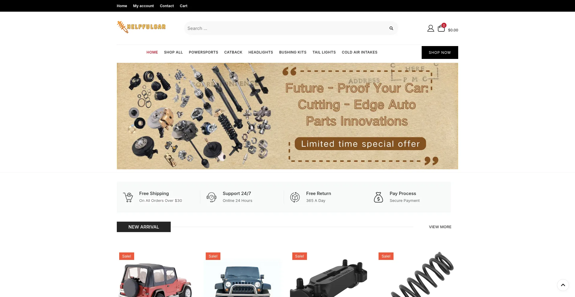 Analysis indicates that helpfulcar.com operates as an e-commerce platform facilitating online transactions for goods or services. The website implements shopping cart functionality, payment processing systems, and product catalog features typical of commercial retail operations.