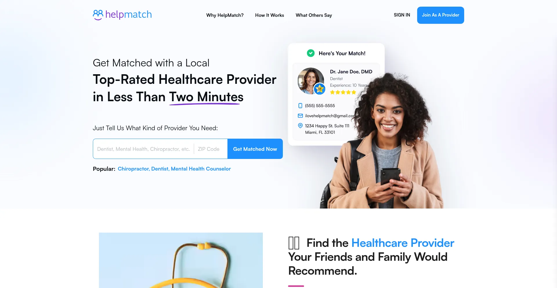 We make finding your perfect healthcare provider easy, fast, and free. Learn more and get matched at https://www.helpmatch.com