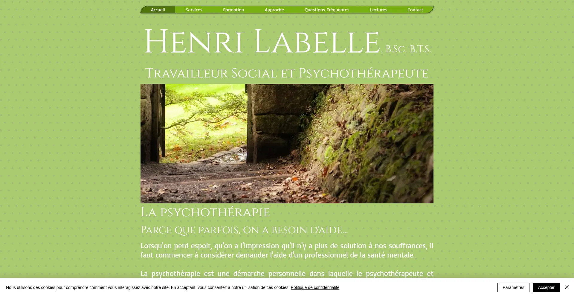Henri Labelle, Travailleur Social et Psychothérapeute. Service professionnel de psychothérapie, spécialisé en santé mentale adulte.