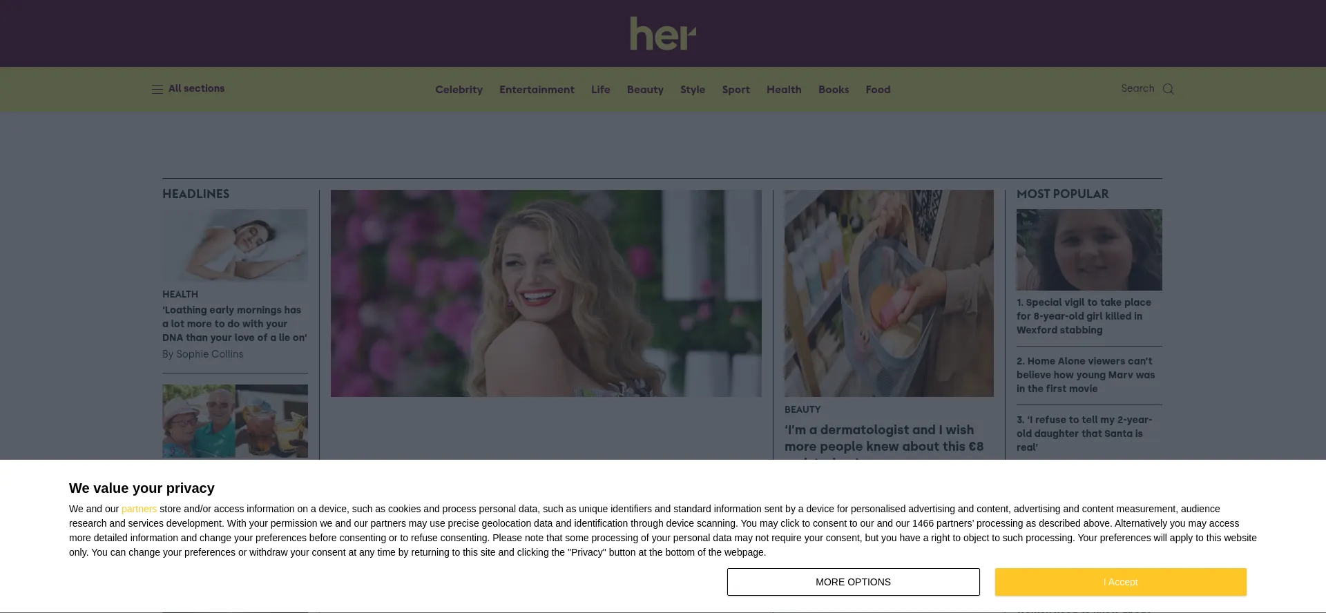 The website implements cookie consent mechanisms in compliance with privacy regulations such as GDPR or CCPA. This demonstrates that her.ie adheres to data protection standards and provides users with control over personal data collection practices.