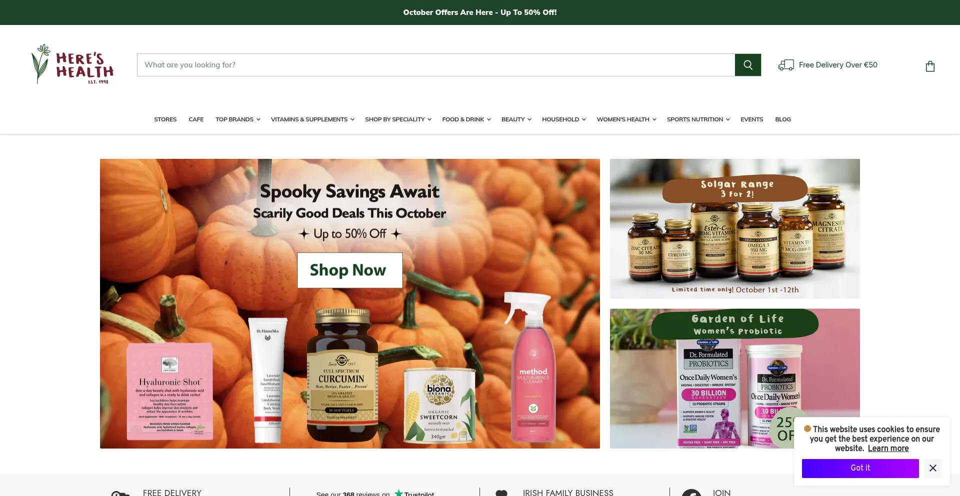 The hereshealth.ie website utilizes free e-commerce platform solutions, which may indicate cost-conscious operations but could also suggest limitations in security features, customer support, or advanced functionality compared to enterprise-grade solutions.