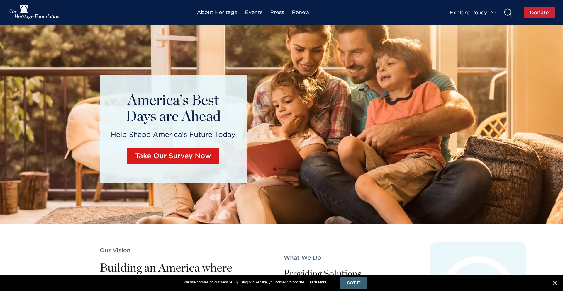 The website implements cookie consent mechanisms in compliance with privacy regulations such as GDPR or CCPA. This demonstrates that heritage.org adheres to data protection standards and provides users with control over personal data collection practices.