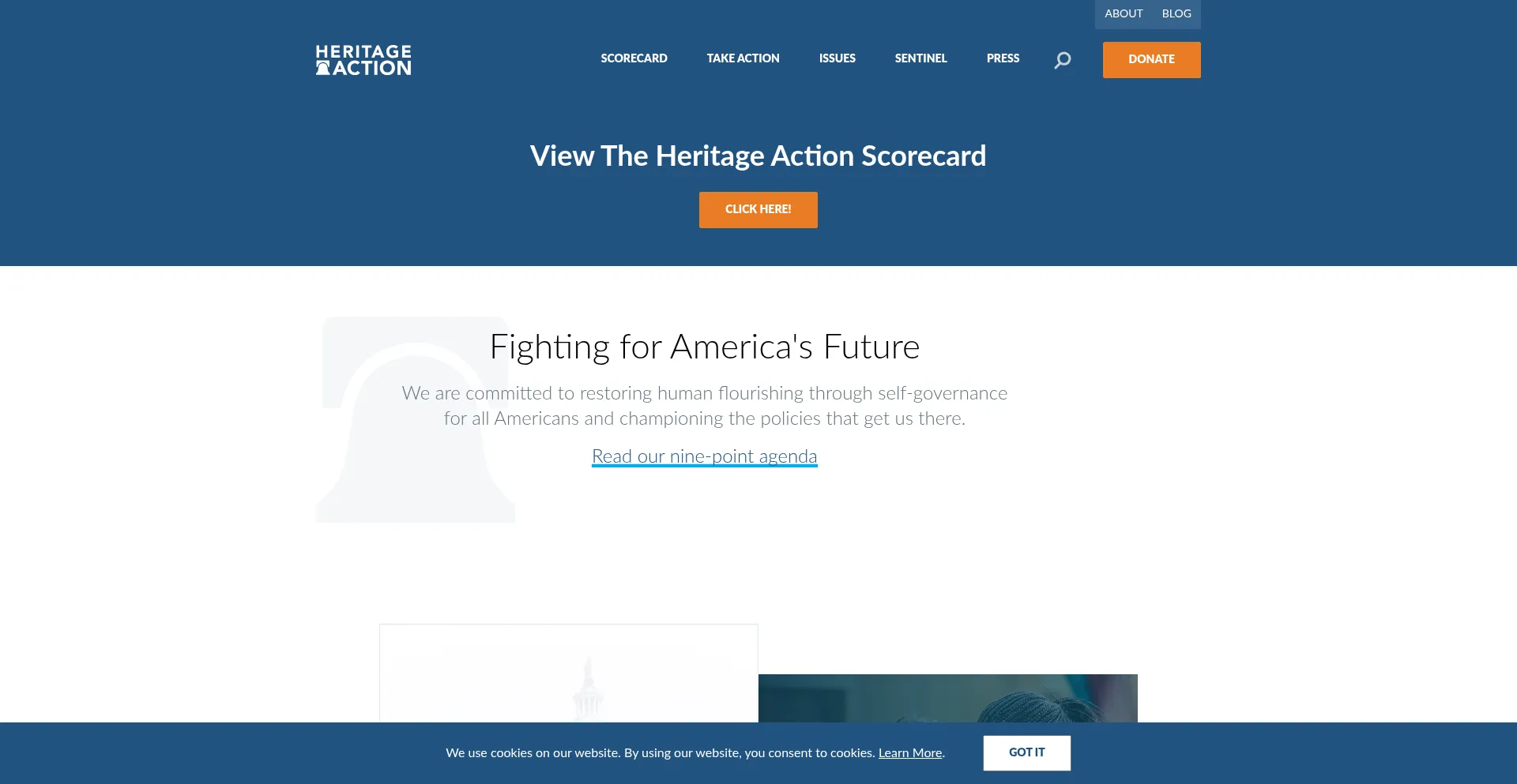 The website implements cookie consent mechanisms in compliance with privacy regulations such as GDPR or CCPA. This demonstrates that heritageaction.com adheres to data protection standards and provides users with control over personal data collection practices.