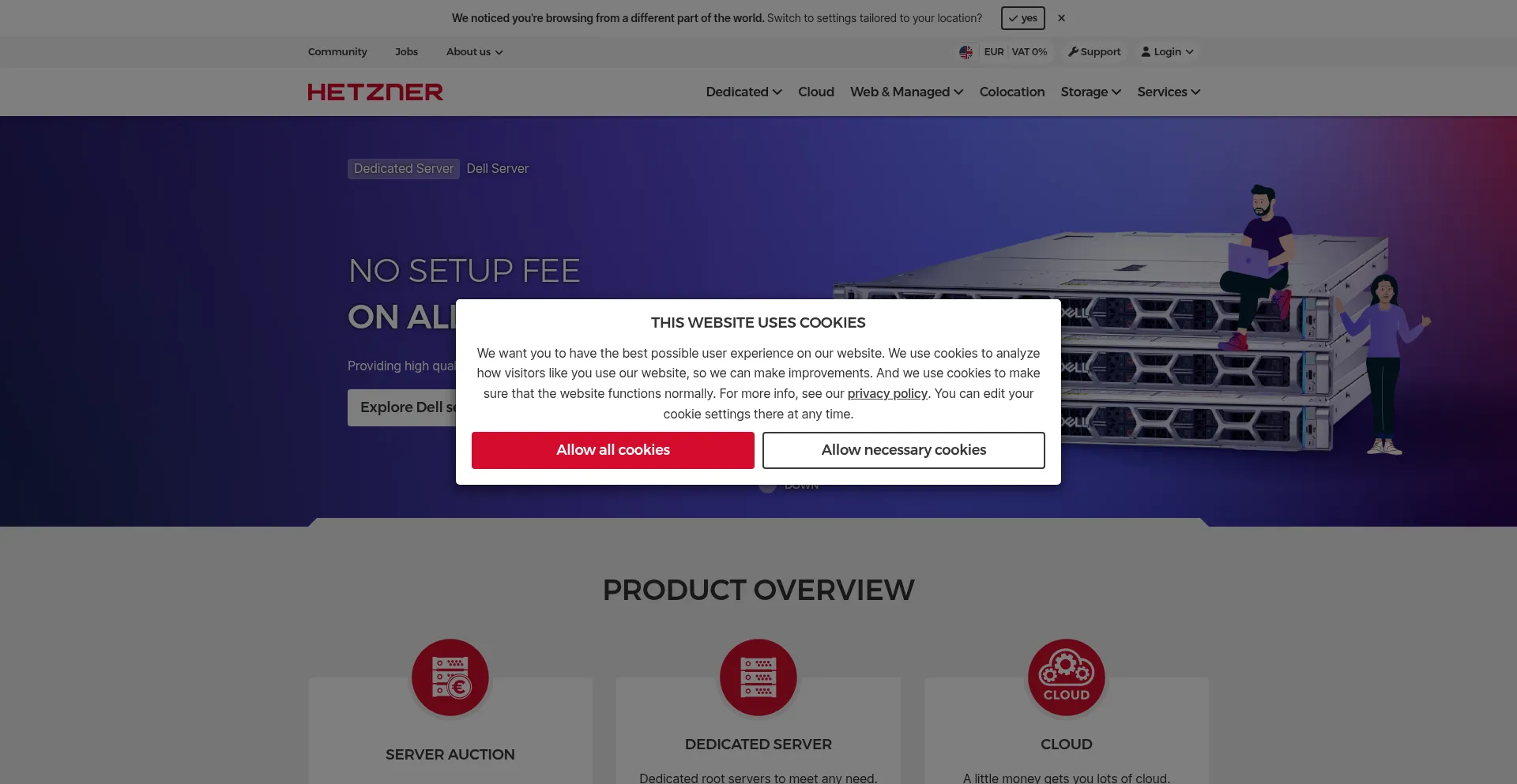 The website implements cookie consent mechanisms in compliance with privacy regulations such as GDPR or CCPA. This demonstrates that hetzner.com adheres to data protection standards and provides users with control over personal data collection practices.
