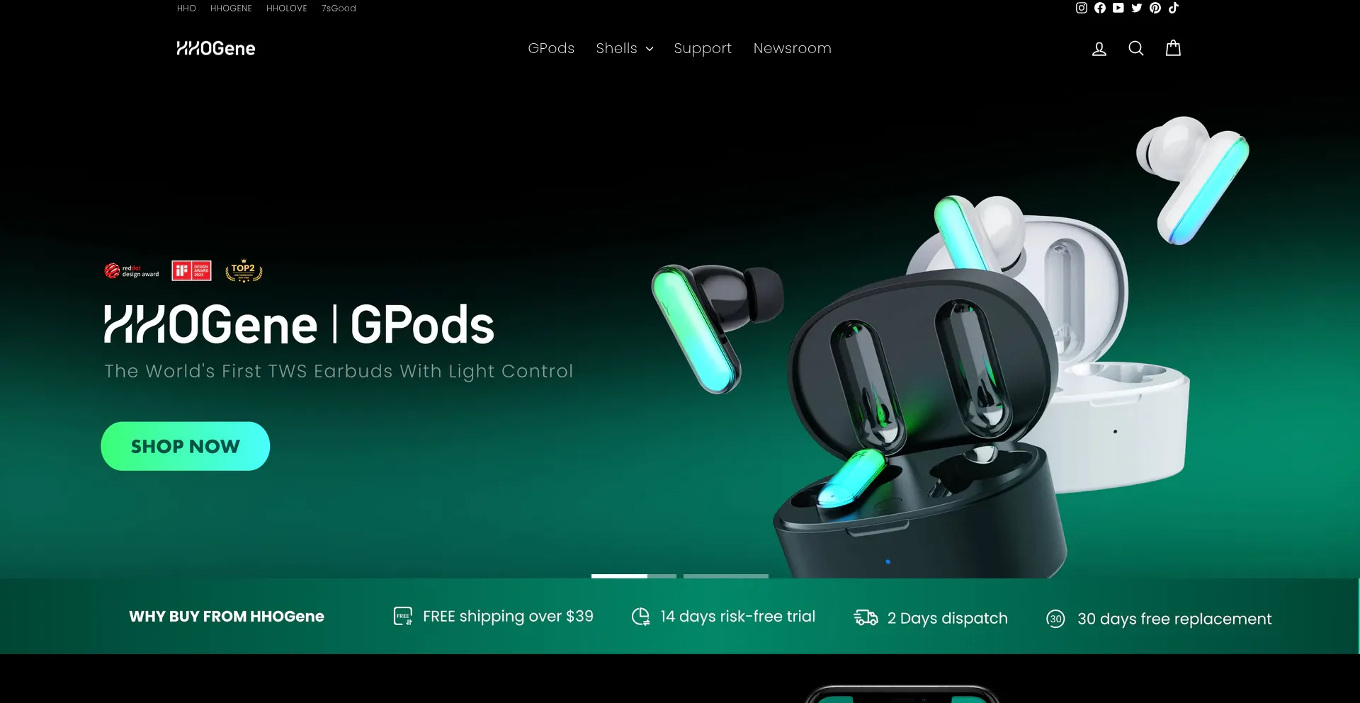 GPods is the world's first light earbuds. HHOGene is a 3C brand explore the beauty that technology has brought to human life.