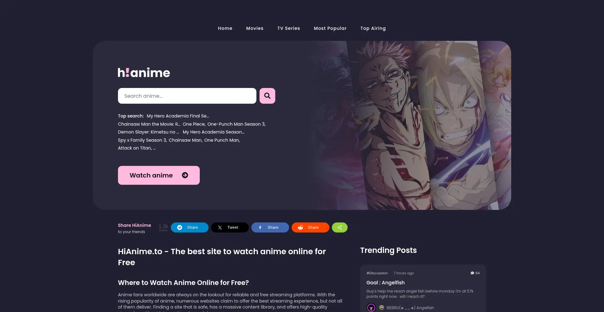HiAnime is the best website to Watch free Anime and anime series HD online. Enjoy fast streaming the latest anime. Just click and enjoy full episodes!
