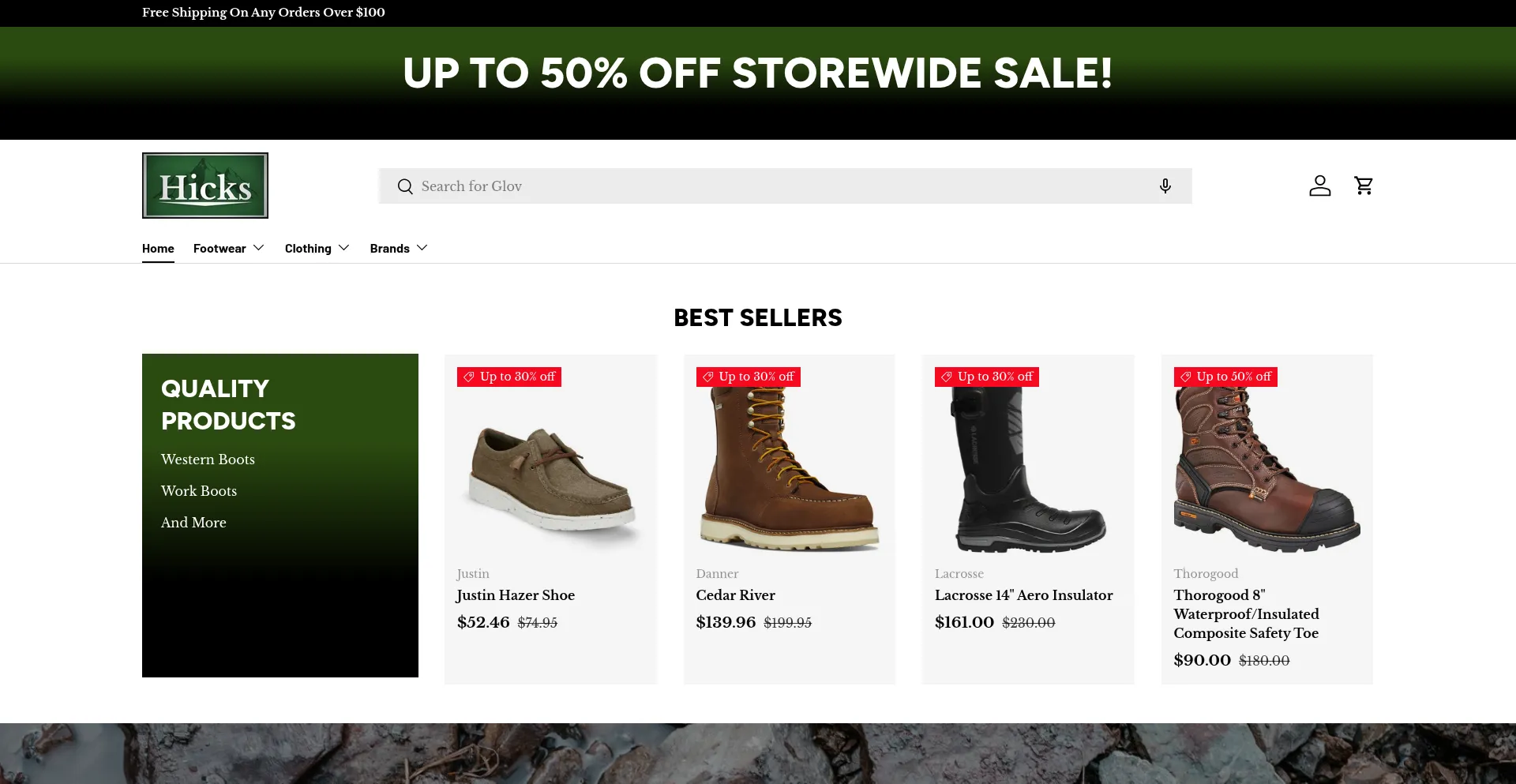 Hicks Trade was made to become your one stop shop for workwear, boots, and apparel. Stop in to check out some of our popular brands such as Thorogood, Danner, Justin Boots, Lacr...