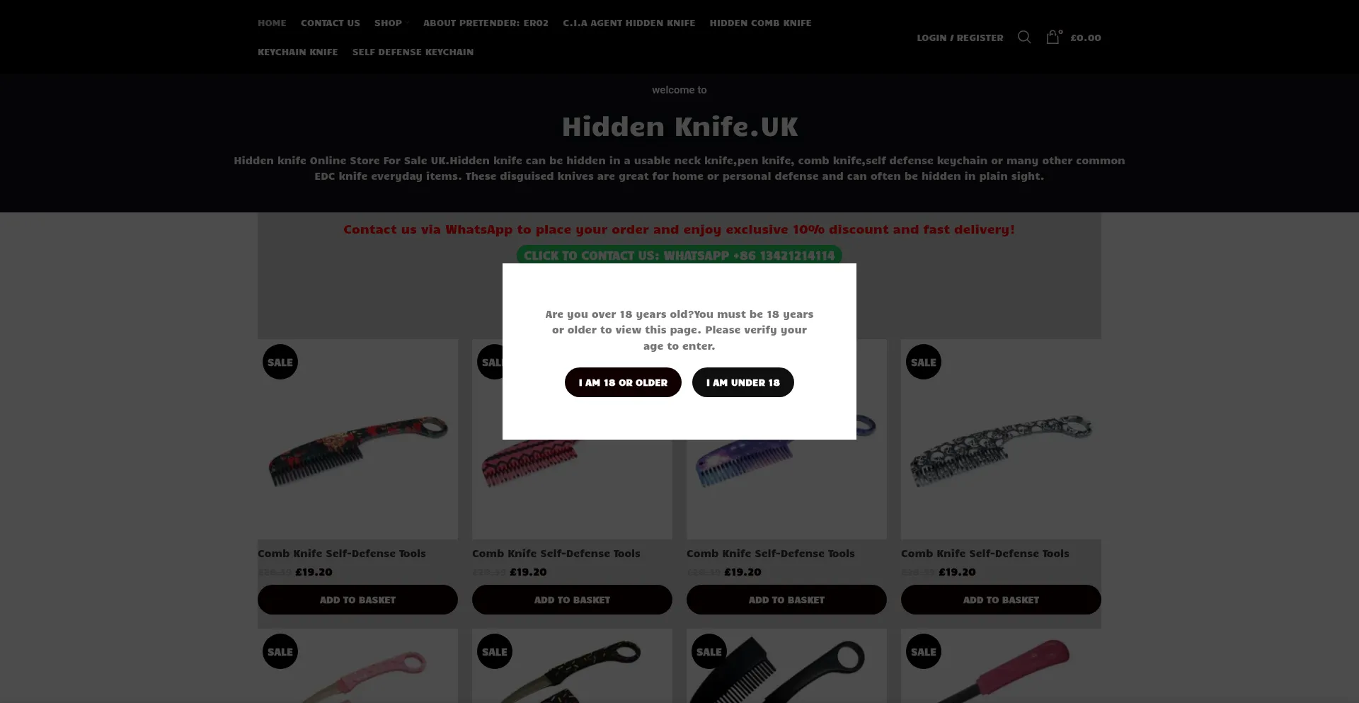 Analysis indicates that hiddenknife.uk operates as an e-commerce platform facilitating online transactions for goods or services. The website implements shopping cart functionality, payment processing systems, and product catalog features typical of commercial retail operations.