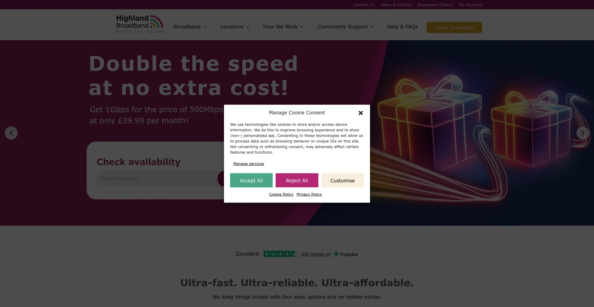 highlandbroadband.com has a good Trustpilot score (4.6) based on 955 reviews, indicating a high level of trust from customers. It is a good sign of legitimacy!