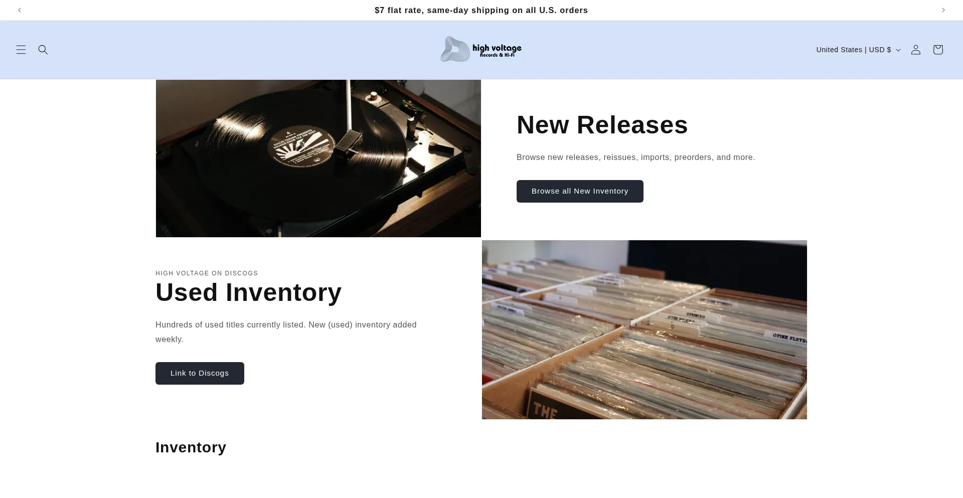 Our analyzer determines that website highvoltagevinyl.com is using Shopify CMS. Shopify is a popular e-commerce platform, powering around 4.4% of websites globally.