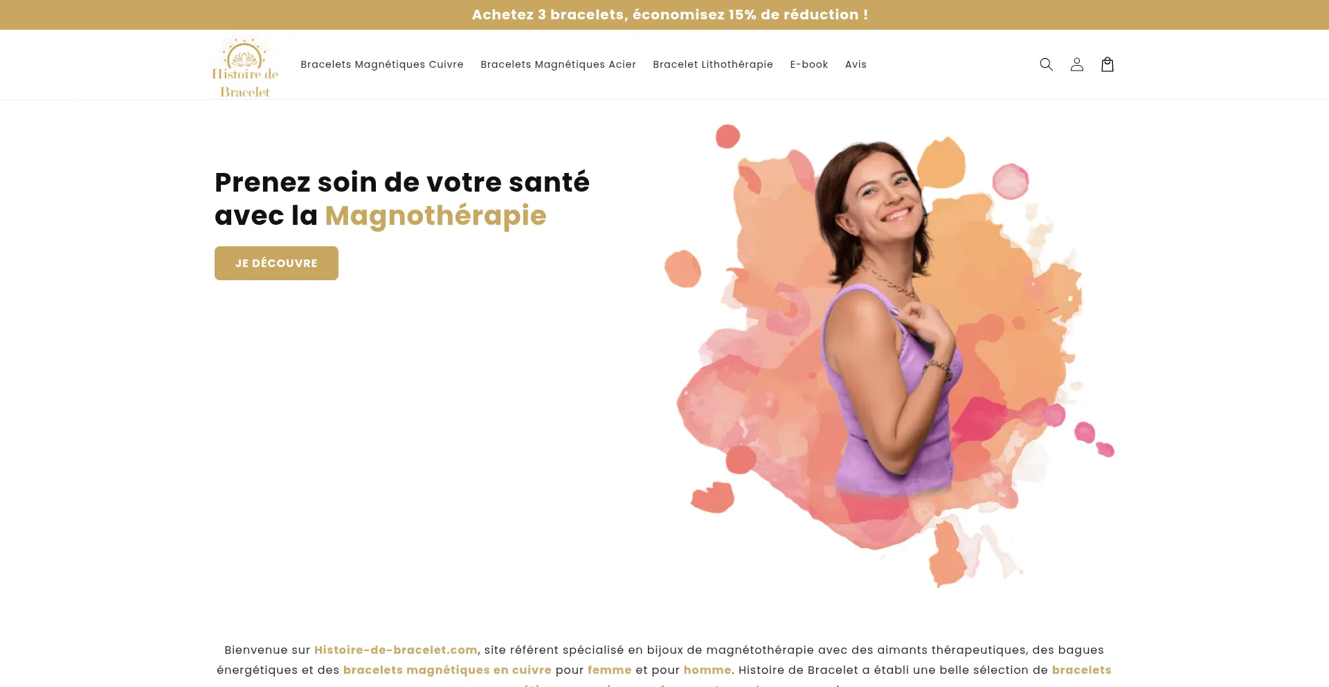 Histoire-de-bracelet.com, spécialiste référent en bijoux de magnétothérapie, bracelet magnétique cuivre et acier pour femmes/hommes, ainsi qu’en aimants thérapeutiques,...