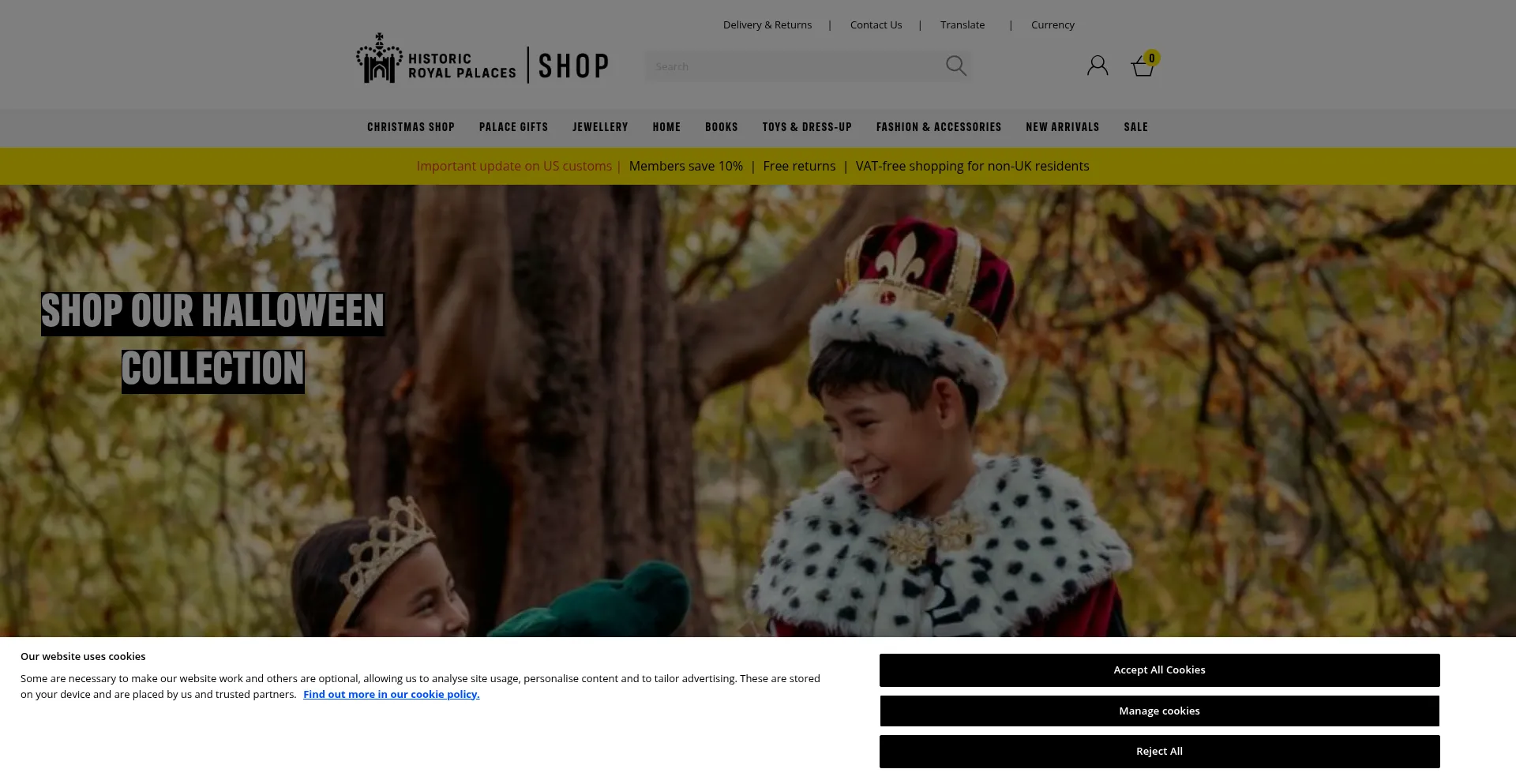 Analysis indicates that historicroyalpalaces.com operates as an e-commerce platform facilitating online transactions for goods or services. The website implements shopping cart functionality, payment processing systems, and product catalog features typical of commercial retail operations.