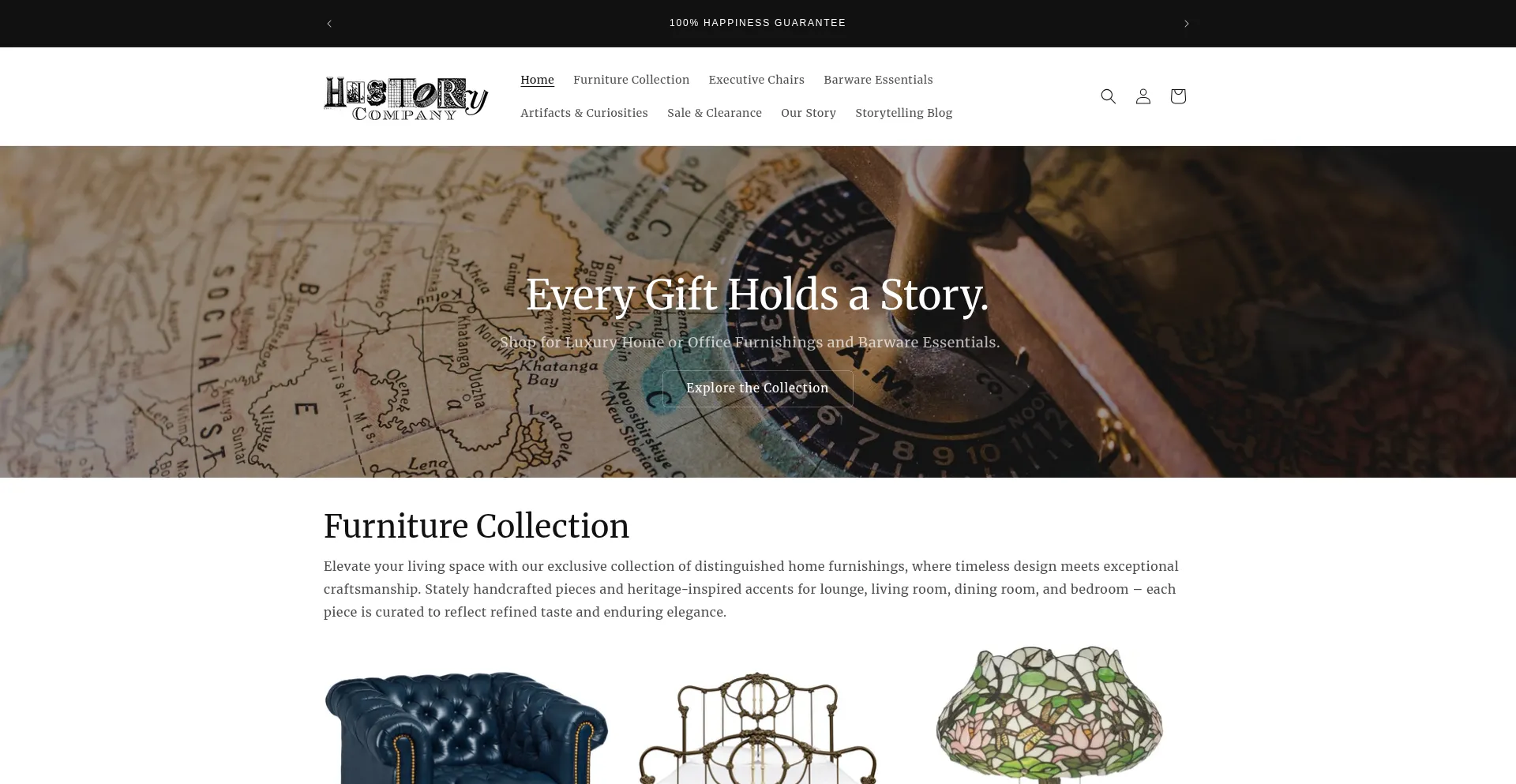 Analysis indicates that historycompany.com operates as an e-commerce platform facilitating online transactions for goods or services. The website implements shopping cart functionality, payment processing systems, and product catalog features typical of commercial retail operations.