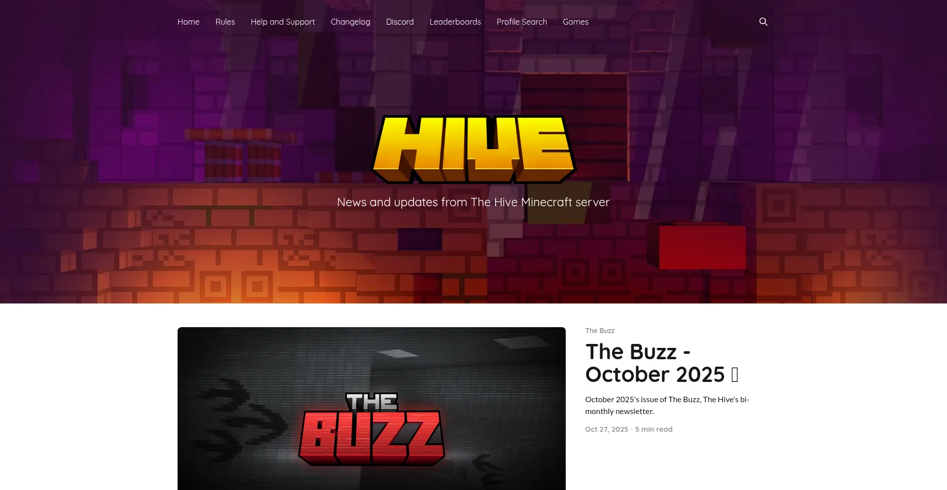 News and updates from The Hive Minecraft server